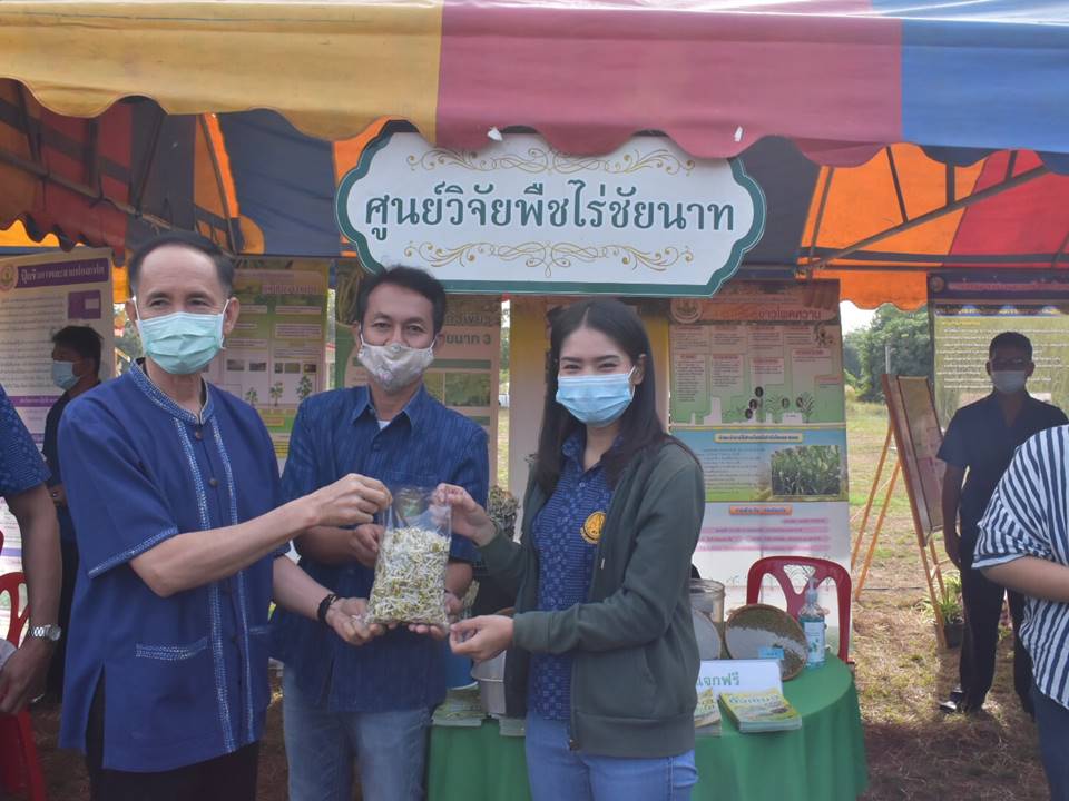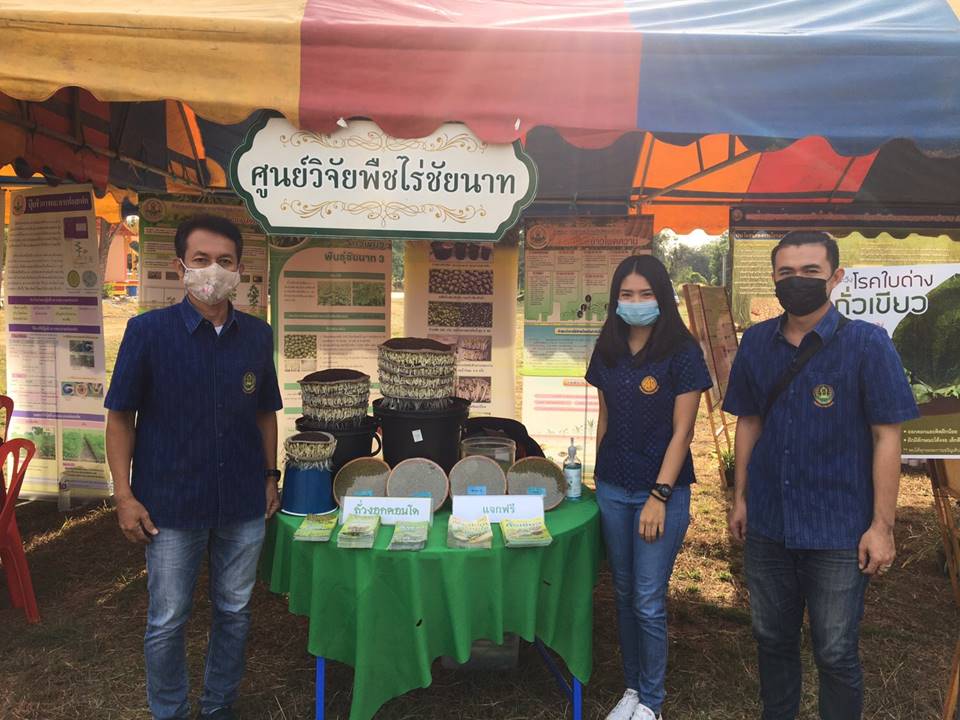 นายธีระ นาคา นายกฤษฎา ฝ่ายจัตุรัส และนางสาววลัยลักษณ์ พลพิชัย นักวิชาการเกษตร ศูนย์วิจัยพืชไร่ชัยนาท ร่วมจัดนิทรรศการและให้บริการความรู้ด้านเทคโนโลยีการผลิตถั่วเขียว ข้าวโพดฝักสด และการเพาะถั่วงอกคอนโดเพื่อเพิ่มมูลค่า โครงการคลินิกเกษตรเคลื่อนที่ จังหวัดชัยนาท ครั้งที่ 1/2564 โดยนายสมบูรณ์ ศิริเวช ผู้ว่าราชการจังหวัดชัยนาท เป็นประธานในพิธี ณ วัดดอนใหญ่ หมู่ที่ 5 ตำบลหนองมะโมง อำเภอหนองมะโมง จังหวัดชัยนาท เกษตรกรเข้าร่วมจำนวน 200 คน