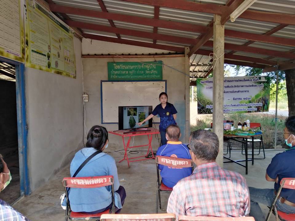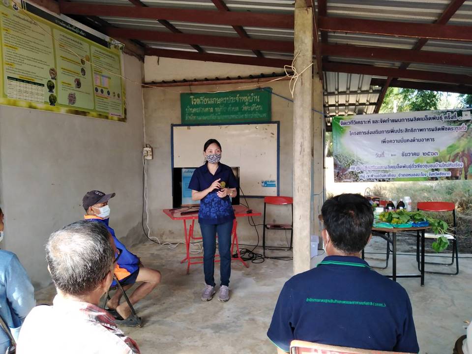 นางสาวเชาวนาถ พฤทธิเทพ นักวิชาการเกษตรชำนาญการพิเศษ เป็นวิทยากรบรรยายถ่ายทอดความรู้ เรื่อง การบริหารศัตรูถั่วเขียวแบบผสมผสาน ภายใต้โครงการส่งเสริมการเพิ่มประสิทธิภาพการผลิตพืชตระกูลถั่วเพื่อความมั่นคงด้านอาหาร จัดโดย สำนักงานเกษตรอำเภอหนองมะโมง จังหวัดชัยนาท ณ ศูนย์ส่งเสริมและผลิตเมล็ดพันธุ์ถั่วเขียวชุมชนบ้านใหม่หินเรียง หมู่ที่ 7 ตำบลวังตะเคียน อำเภอหนองมะโมง จังหวัดชัยนาท เกษตรกรเข้าร่วมจำนวน 20 ราย