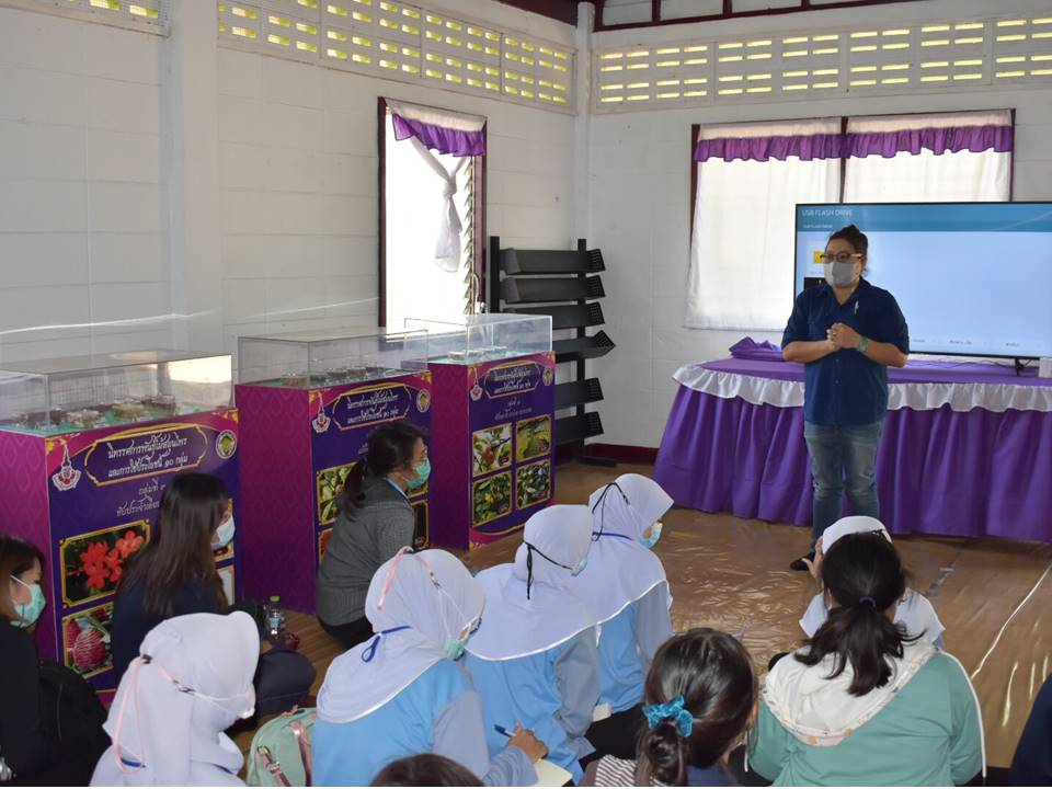 นางสาวปวีณา ไชยวรรณ์ นักวิชาการเกษตรชำนาญการ นางสาววิลัยรัตน์ แป้นแก้ว นักวิชาการเกษตรปฏิบัติการ พร้อมด้วยเจ้าหน้าที่ศูนย์วิจัยพืชไร่ชัยนาทและบรรยายให้ความรู้แก่เจ้าหน้าที่และนักศึกษา กลุ่มงานแพทย์แผนไทยและแพทย์ทางเลือก โรงพยาบาลสรรคบุรี จำนวน 16 ราย ในการเข้าศึกษาดูงาน โครงการอนุรักษ์พันธุกรรมพืชอันเนื่องมาจากพระราชดำริ สมเด็จพระเทพรัตนราชสุดาฯ สยามบรมราชกุมารี ณ แปลงทดลองและขยายพันธุ์พืชดงเกณฑ์หลวง ตำบลหนองขุ่น อำเภอวัดสิงห์ จังหวัดชัยนาท