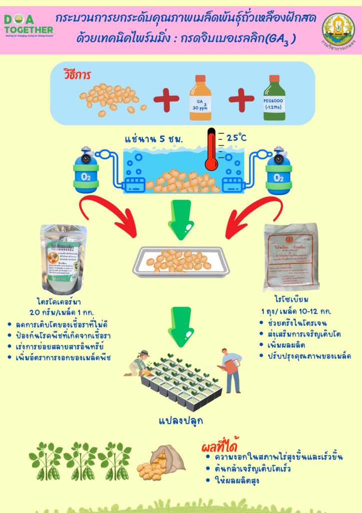 กระบวนการยกระดับคุณภาพเมล็ดพันธุ์ถั่วเหลืองฝักสด ด้วยเทคนิคไพร์มมิ่ง กรดจิบเบอเรลลิก