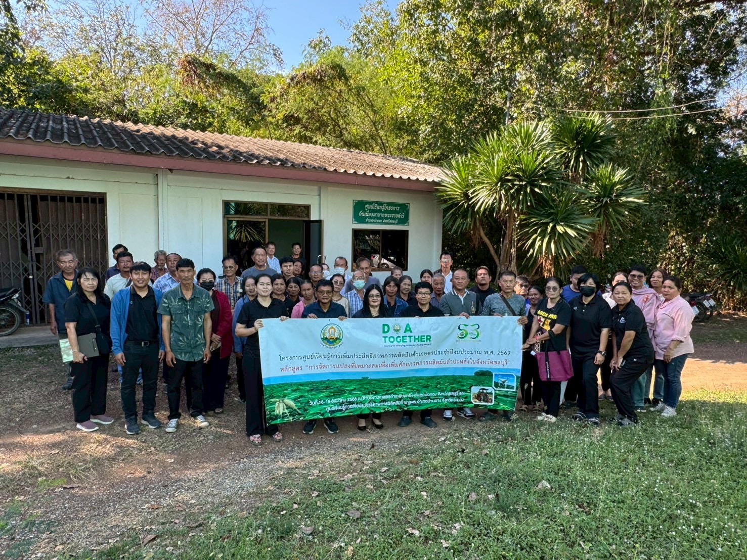 วันที่ ๑๘ ธันวาคม ๒๕๖๘ นางวัลลีย์ อมรพล ผู้อำนวยการศูนย์วิจัยพืชไร่ระยอง พร้อมด้วย นายนฤพน รักขยัน นักวิชาการเกษตรปฏิบัติการ และนายณัฐวุฒิ อ่อนเฉียบ นักวิชาการเกษตรปฏิบัติการ เป็นวิทยากรการบรรยายการจัดการแปลงที่เหมาะสมเพื่อเพิ่มศักยภาพการผลิตมันสำปะหลัง การใช้ DOA soli test kits และการแปลผลการวิเคราะห์ดินกับการใช้ปุ๋ยมันสำปะหลัง ในการฝึกอบรมในโครงการศูนย์เรียนรู้การเพิ่มประสิทธิภาพการผลิตสินค้าเกษตร (ศพก.) หลักสูตร “การจัดการแปลงที่เหมาะสมเพื่อเพิ่มศักยภาพการผลิตมันสำปะหลังในจังหวัดชลบุรี” ณ สำนักงานเกษตรอำเภอบ่อทอง อำเภอบ่อทอง จังหวัดชลบุรี
