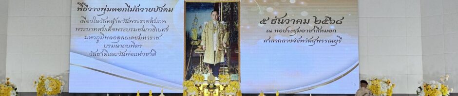 เนื่องในวันคล้ายวันพระราชสมภพของ พระบาทสมเด็จพระบรมชนกาธิเบศร มหาภูมิพลอดุลยเดชมหาราช บรมนาถบพิตร วันชาติ และวันพ่อแห่งชาติ 5 ธันวาคม 2568 ศูนย์วิจัยพืชไร่สุพรรณบุรี ได้มอบหมายให้นายภัทรศิลป์ ศรไชยากร นักจัดการงานทั่วไปชำนาญการ และนางสาวพรทิพย์ ขวัญยืน เจ้าหน้าที่การเงินและบัญชีปฏิบัติงาน เข้าร่วมถวายบังคมหน้าพระบรมฉายาลักษณ์พระบาทสมเด็จพระบรมชนกาธิเบศร มหาภูมิพลอดุลยเดชมหาราช บรมนาถบพิตร ณ หอประชุมอาชาสีหมอก ศาลากลางจังหวัดสุพรรณบุรี
