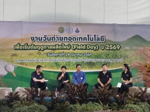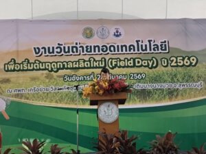วันที่ 24 มีนาคม 2569 นายอนุวัฒน์ จันทรสุวรรณ ผู้อำนวยการศูนย์วิจัยพืชไร่สุพรรณบุรี และนางสาวระพีพันธุ์ ชั่งใจ นักวิชาการเกษตรชำนาญการพิเศษ ร่วมเป็นเกียรติในพิธีเปิดงานวันถ่ายทอดเทคโนโลยีเพื่อเริ่มต้นฤดูกาลผลิตใหม่ (Field Day) ระดับเขต ประจำปีงบประมาณ พ.ศ.2569 ครั้งที่ 1 จังหวัดสุพรรณบุรี โดยมีนางธัญธิตา บุญญมณีกุล รองอธิบดีกรมส่งเสริมการเกษตร เป็นประธาน ภายในงานประกอบด้วย การเสวนาวิชาการ เรื่อง “พันธุ์ข้าวมูลค่าสูง:โอกาสใหม่ของเกษตรกรไทย” และสถานีเรียนรู้ 1.การทำนาลดโลกร้อน 2.การจัดการวัสดุเหลือใช้ทางการเกษตร และ 3.ถั่วเขียว พืชทางเลือกหรือทางรอด โดยมีเกษตรกรเป้าหมาย จำนวน 210 ราย ณ เครือข่าย ศพก.วิสาหกิจชุมชนโรงสีข้าวชุมชนบ้านเขาคีรี ต.หัวเขา อ.เดิมบางนางบวช จ.สุพรรณบุรี