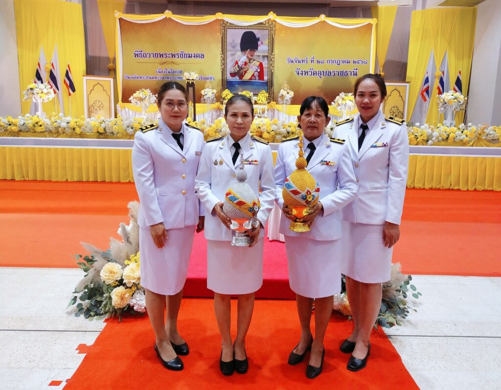 วันที่ 28 กรกฎาคม 2568 นางสาวจิราลักษณ์ ภูมิไธสง ผู้อำนวยการศูนย์วิจัยพืชไร่อุบลราชธานี พร้อมด้วย เจ้าหน้าที่ศูนย์วิจัยพืชไร่อุบลราชธานี ร่วมกิจกรรม เฉลิมพระเกียรติพระบาทสมเด็จพระเจ้าอยู่หัว เนื่องในโอกาส “วันเฉลิมพระชนมพรรษา 28 กรกฎาคม 2568”ประกอบด้วย พิธีเจริญพระพุทธมนต์ เจริญจิตตภาวนา ทำบุญตักบาตร พิธีถวายสัตย์ปฏิญาณ เพื่อเป็นข้าราชการที่ดี และพลังของแผ่นดิน พิธีลงนามถวายพระพรชัยมงคล ณ วัดมหาวนาราม ตำบลในเมือง อำเภอเมืองอุบลราชธานี จังหวัดอุบลราชธานี พิธีถวายเครื่องราชสักการะ วางพานพุ่ม และจุดเทียนถวายพระพรชัยมงคล ณ หอประชุมจังหวัดอุบลราชธานี ตำบลแจระแม อำเภอเมืองอุบลราชธานี จังหวัดอุบลราชธานี โดยมี ว่าที่พันตรี อดิศักดิ์ น้อยสุวรรณ ผู้ว่าราชการจังหวัดอุบลราชธานี เป็นประธานในพิธี