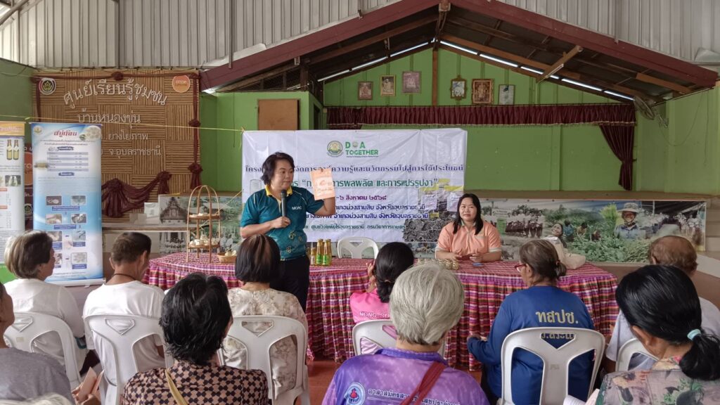 วันที่ 6 สิงหาคม 2568 นางสาวจิราลักษณ์ ภูมิไธสง ผู้อำนวยกาศูนย์วิจัยพืชไร่อุบลราชธานี มอบหมายให้ นางสาวศิริลักษณ์ สมนึก นักวิชาการเกษตรชำนาญการ พร้อมด้วย คณะเจ้าหน้าที่ศูนย์วิจัยพืชไร่อุบลราชธานี จัดฝึกอบรม หลักสูตร“การจัดการผลผลิตและการแปรรูปงา เพื่อเพิ่มมูลค่า” ภายใต้โครงการบริหารจัดการองค์ความรู้ และนวัตกรรมไปสู่การใช้ประโยชน์เงินอุดหนุนคงเหลือ จากการดำเนินงานวิจัยงานมูลฐาน (Fundamental Fund) สกสว. ปีงบประมาณ พ.ศ. 2566 (10%) ณ ศาลากลางหมู่บ้าน ตำบลยางโยภาพ อำเภอม่วงสามสิบ จังหวัดอุบลราชธานี เกษตรกรเข้ารับการอบรม 50 ราย