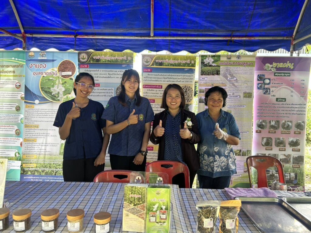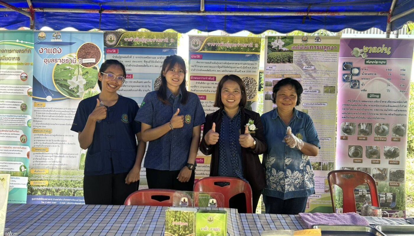 วันที่ 10 กันยายน 2568 นางสาวจิราลักษณ์ ภูมิไธสง ผู้อำนวยการศูนย์วิจัยพืชไร่ อุบลราชธานี มอบหมายให้ นางจุไรรัตน์ หวังเป็น นักวิชาการเกษตรชำนาญการพิเศษ พร้อมด้วย คณะเจ้าหน้าที่ศูนย์วิจัยพืชไร่อุบลราชธานี ร่วมจัดนิทรรศการ “เทคโนโลยีการผลิตงา และสาธิตการแปรรูปผลิตภัณฑ์งาแผ่น เพื่อเพิ่มมูลค่า” ในงานประเมินสถานศึกษาพอเพียง “ศูนย์เรียนรู้ตามหลักปรัชญาของเศรษฐกิจพอเพียงด้านการศึกษา” ณ ศูนย์การเรียนรู้ระดับอำเภอสว่างวีระวงศ์ อำเภอสว่างวีระวงศ์ จังหวัดอุบลราชธานี