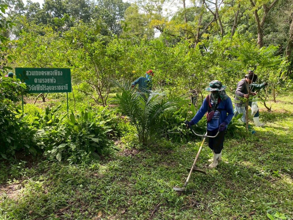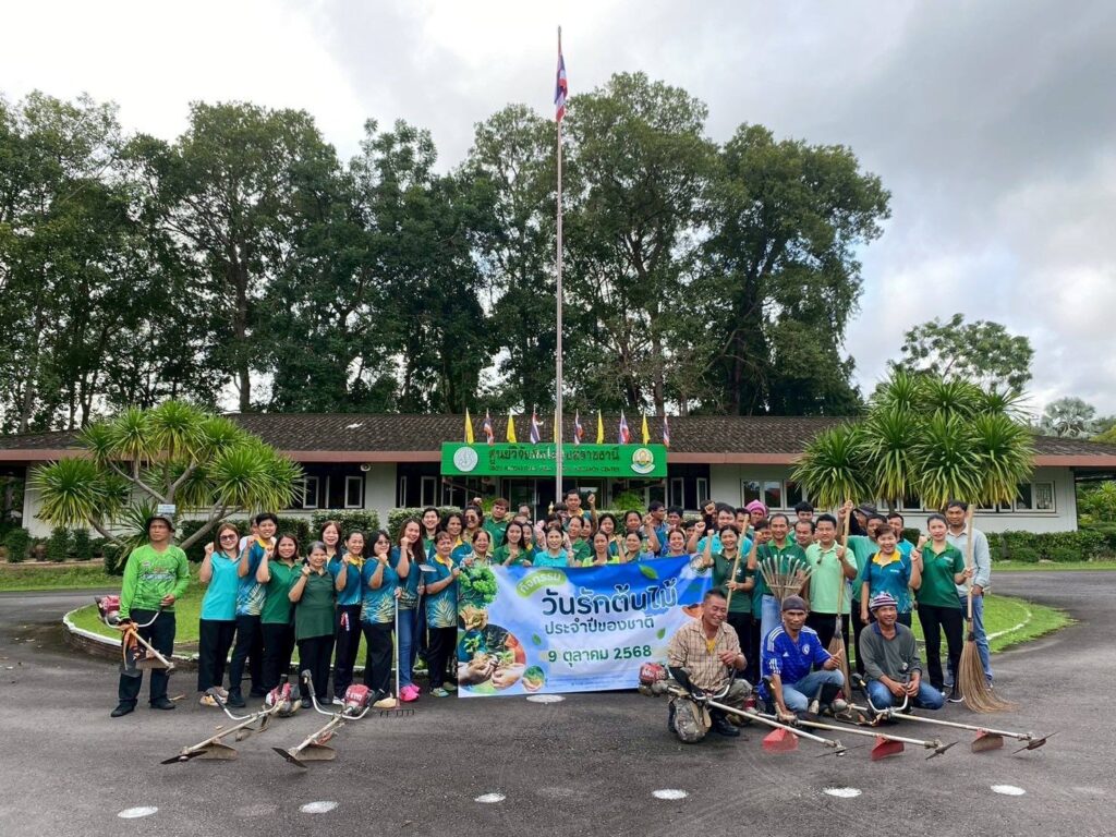 วันที่ 9 ตุลาคม 2568 นางสาวจิราลักษณ์ ภูมิไธสง ผู้อำนวยการศูนย์วิจัยพืชไร่อุบลราชธานี พร้อมด้วยคณะเจ้าหน้าที่ศูนย์วิจัยพืชไร่อุบลราชธานี จัดกิจกรรมวันรักต้นไม้ประจำปีของชาติ 2568 โดยร่วมกันบำรุงรักษาต้นไม้ ใส่ปุ๋ย พรวนดินจัดทรงพุ่ม ตัดแต่งกิ่งไม้ ตัดหญ้าบริเวณโดยรอบ เพื่อน้อมรำลึกในพรมหากรุณาธิคุณของสมเด็จพระศรีนครินทราบรมราชชนนี และเป็นการสร้างจิตสำนึกให้เกิดความรักความหวงแหนทรัพยากรป่าไม้ของชาติ ณ สวนพรรณไม้หอมเฉลิมพระเกียรติสวนเกษตรพอเพียงตามรอยพ่อ สวนป่าท้ายไร่ ศูนย์วิจัยพืชไร่อุบลราชธานี อำเภอสว่างวีระวงศ์ จังหวัดอุบลราชธานี