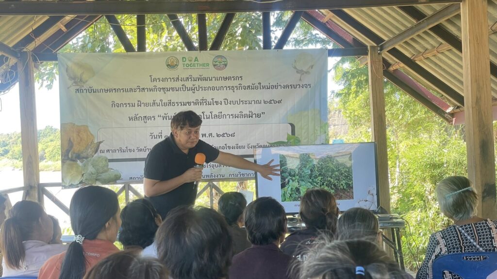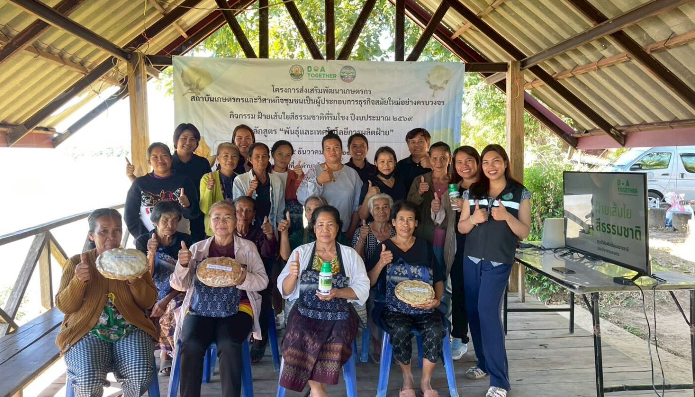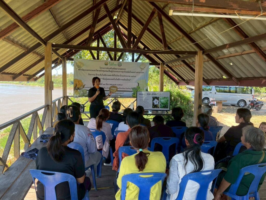 วันที่ 15 ธันวาคม 2568 นางสาวจิราลักษณ์ ภูมิไธสง ผู้อำนวยการศูนย์วิจัยพืชไร่อุบลราชธานี มอบหมายให้ นางจุไรรัตน์ หวังเป็น นักวิชาการเกษตรชำนาญการพิเศษพร้อมด้วย คณะเจ้าหน้าที่ ศูนย์วิจัยพืชไร่อุบลราชธานี จัดฝึกอบรม หลักสูตร “พันธุ์และเทคโนโลยีการผลิตฝ้าย” ภายใต้งบประมาณจังหวัดอุบลราชธานี ประจำปี 2569 โครงการส่งเสริมพัฒนาเกษตรกรสถาบันเกษตรกรและวิสาหกิจชุมชนเป็นผู้ประกอบการธุรกิจ สมัยใหม่อย่างครบวงจร กิจกรรมฝ้ายเส้นใยสีธรรมชาติที่ริมโขง