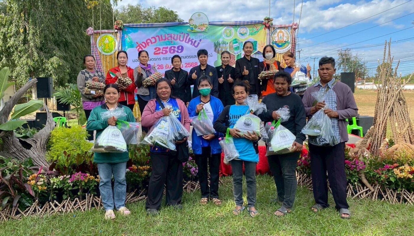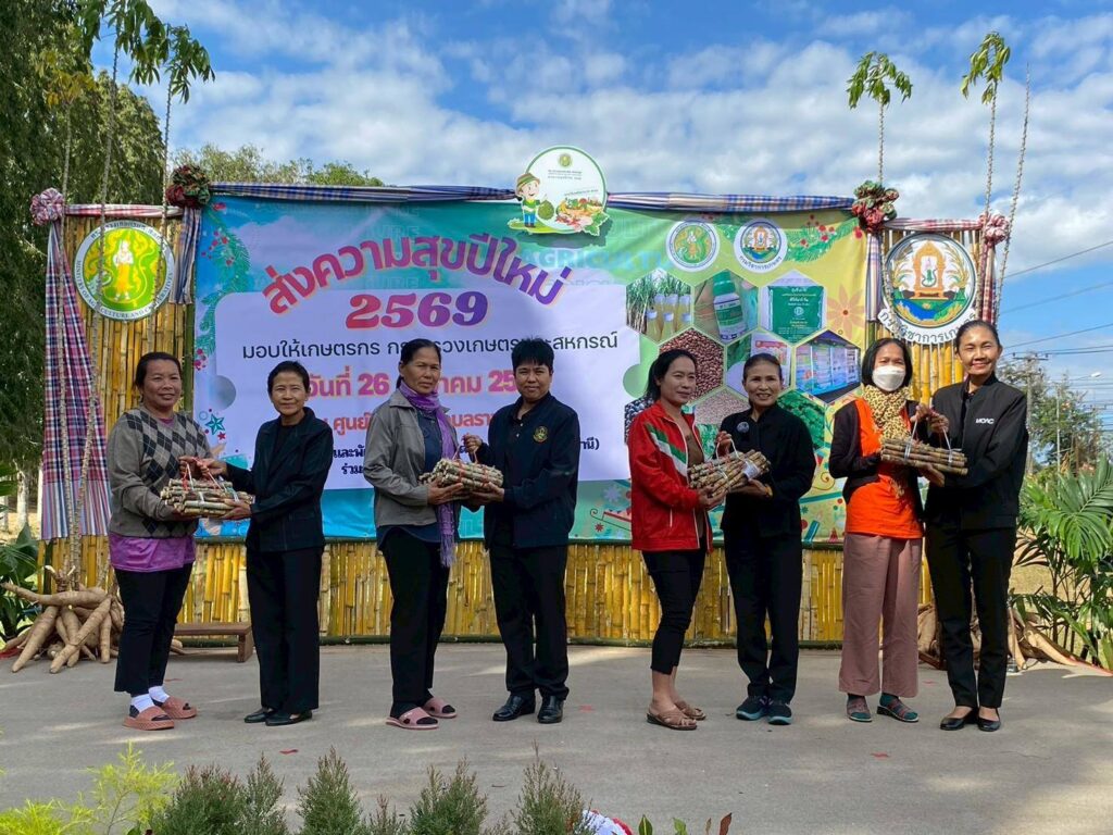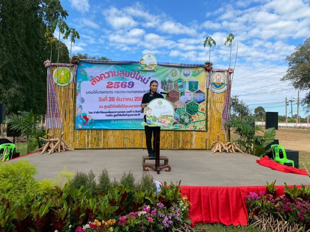วันที่ 26 ธันวาคม 2568 ศูนย์วิจัยพืชไร่อุบลราชธานี ร่วมกับ สำนักวิจัยและพัฒนา การเกษตร เขตที่ 4 จังหวัดอุบลราชธานี จัดกิจกรรม โครงการ “ส่งความสุขปีใหม่ มอบให้เกษตรกร กระทรวงเกษตรและสหกรณ์” ประจำปี พ.ศ. 2569 โดยศูนย์วิจัยพืชไร่อุบลราชธานีได้ส่งมอบท่อนพันธุ์มันสำปะหลัง พันธุ์ กวก.ระยอง 72 อ้อยหีบน้ำตาล พันธุ์ กวก. นครสวรรค์ 1เมล็ดพันธุ์ข้าวโพดเทียน พันธุ์ กวก.สุโขทัย 1 เมล็ดพันธุ์งาแดง พันธุ์ กวก.อุบลราชธานี 2 กวก.อุบลราชธานี 3 และเมล็ดพันธุ์ถั่วพุ่มเมล็ดดำ พันธุ์ กวก.อุบลราชธานี เพื่อมอบเป็นของขวัญให้เกษตรกรในช่วงเทศกาลปีใหม่ นำไปใช้ประโยชน์ในไร่นา ภูมิสังคม ต่อยอดการเพิ่มขยายกระจายพันธุ์พืชพันธุ์ดี สร้างเป็นอาชีพ มีกิน มีใช้ มีรายได้พอเพียง พร้อมจัดนิทรรศการถ่ายทอดความรู้ด้านการผลิตพืช และสาธิตการแปรรูปผลิตภัณฑ์เพื่อเพิ่มมูลค่าผลผลิตทางการเกษตร ณ ศูนย์วิจัยพืชไร่อุบลราชธานี ตำบลท่าช้าง อำเภอสว่างวีระวงศ์ จังหวัดอุบลราชธานี มีเกษตรกร และประชาชนผู้สนใจร่วมกิจกรรม จำนวน 156 ราย