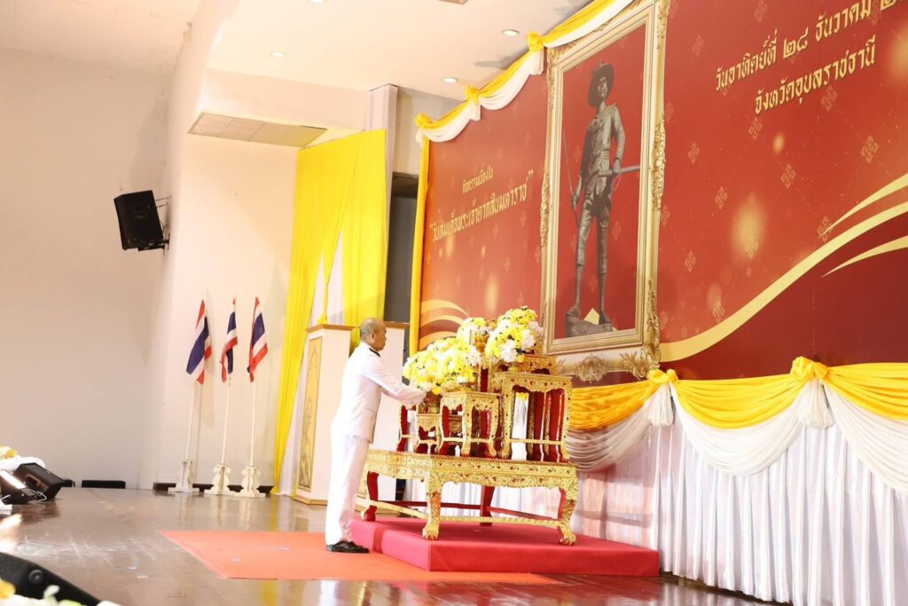 วันที่ 28 ธันวาคม 2568 นางสาวจิราลักษณ์ ภูมิไธสง ผู้อำนวยการศูนย์วิจัยพืชไร่อุบลราชธานี พร้อมด้วย นางสาวประภาพร แพงดา นักวิชาการเกษตรชำนาญการ และเจ้าหน้าที่ศูนย์วิจัยพืชไร่อุบลราชธานี ร่วมพิธีถวายราชสักการะ วางพานพุ่มดอกไม้สด เนื่องใน “วันสมเด็จพระเจ้าตากสินมหาราช” เพื่อน้อมรำลึกในพรมหากรุณาธิคุณของสมเด็จพระเจ้าตากสินมหาราช พระมหากษัตริย์ผู้ทรงกอบกู้เอกราชให้แก่ชาติไทย โดยมี ว่าที่ร้อยตรีกรกฎ ประเสริฐวงษ์ รองผู้ว่าราชการจังหวัดอุบลราชธานี เป็นประธานพิธี ณ หอประชุมจังหวัดอุบลราชธานี ศาลากลางจังหวัดอุบลราชธานี ตำบลแจระแม อำเภอเมือง จังหวัดอุบลราชธานี