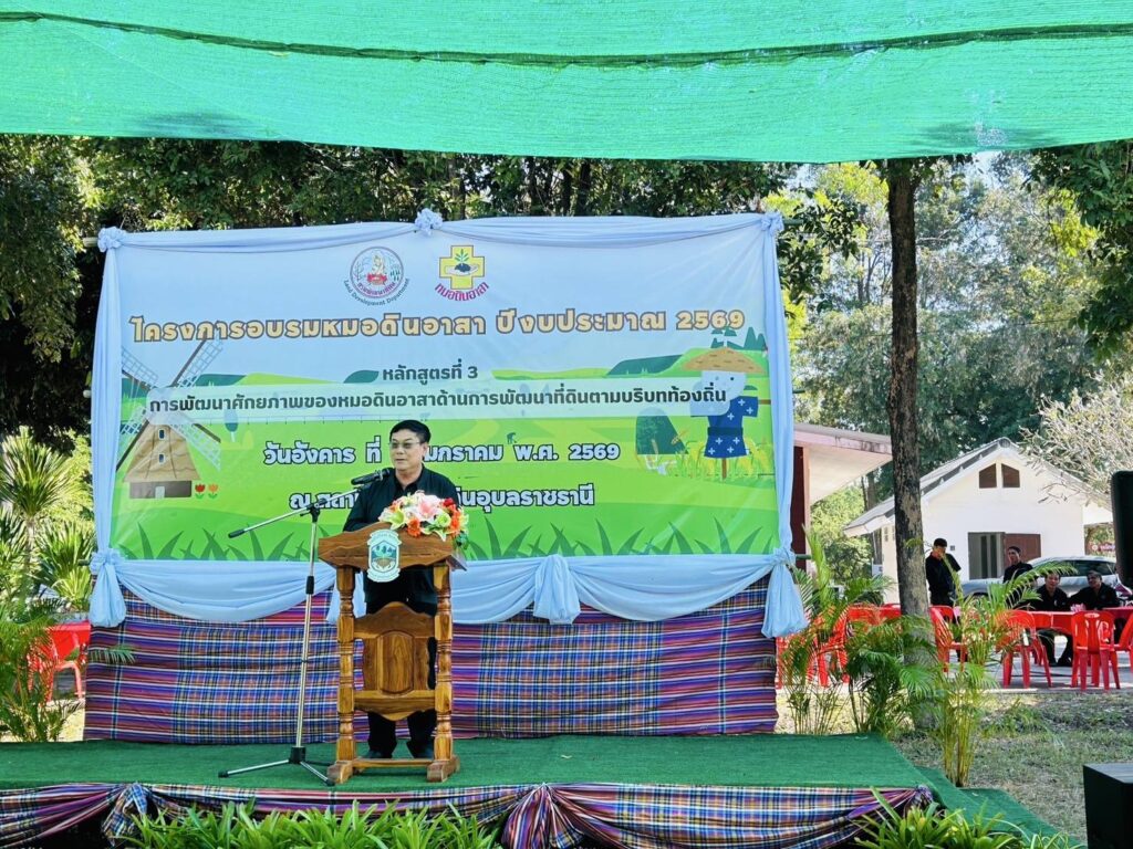 กวก.สุพรรณบุรี 1 พร้อมมอบ ท่อนพันธุ์อ้อยคั้นน้ำ พันธุ์ กวก.สุพรรณบุรี 1 กวก.สุพรรณบุรี 50 และกวก.ศรีสำโรง 1 ให้กับหมอดินอาสา ในโครงการอบรมหมอดินอาสา ประจำปีงบประมาณ พ.ศ. 2569 โดยมี นายสุรชาติ มาลาศรี รองอธิบดีกรมพัฒนาที่ดิน เป็นประธานพิธีเปิด ณ สถานีพัฒนาที่ดินอุบลราชธานี ตำบลท่าช้าง อำเภอสว่างวีระวงศ์ จังหวัดอุบลราชธานี