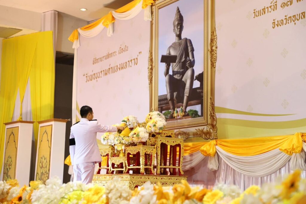 วันที่ 17 มกราคม 2569 นางสาวจิราลักษณ์ ภูมิไธสง ผู้อำนวยการศูนย์วิจัยพืชไร่อุบลราชธานี มอบหมายให้ นางสมหมาย วังทอง เจ้าพนักงานการเกษตรชำนาญงานและนางสาวจงกล เปี้ยววงค์ พนักงานประจำสำนักงาน ร่วมพิธีถวายราชสักการะ วางพานพุ่มดอกไม้สด เบื้องหน้าพระบรมสาทิสลักษณ์ พ่อขุนรามคำแหงมหาราช เนื่องใน “วันพ่อขุนรามคำแหงมหาราช” เพื่อน้อมรำลึกถึงพระมหากรุณาธิคุณของพ่อขุนรามคำแหงมหาราช ที่มีต่อประชาชนชาวไทย ทรงทำนุบำรุงบ้านเมือง และสร้างสรรค์มรดก ด้านศิลปวัฒนธรรม ทั้งยังประดิษฐ์คิดค้นอักษรไทยขึ้นให้ชนรุ่นหลังได้ใช้กันจนถึงทุกวันนี้ โดยมี นายณรงค์ เทพเสนา ผู้ว่าราชการจังหวัดอุบลราชธานี เป็นประธานในพิธี ณ หอประชุมจังหวัดอุบลราชธานีศาลากลางจังหวัดอุบลราชธานี ตำบลแจระแม อำเภอเมือง จังหวัดอุบลราชธานี
