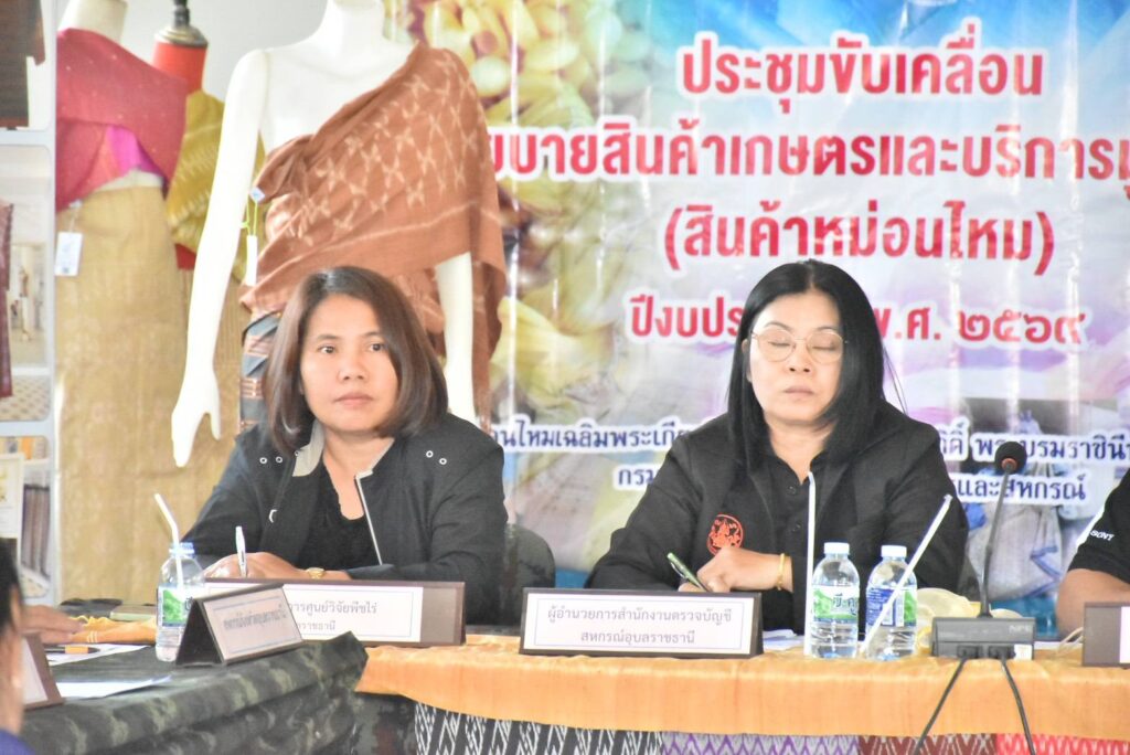 วันที่ 21 มกราคม 2569 นางสาวจิราลักษณ์ ภูมิไธสง ผู้อำนวยการศูนย์วิจัยพืชไร่อุบลราชธานี มอบหมายให้ นางจุไรรัตน์ หวังเป็น นักวิชาการเกษตรชำนาญการพิเศษ และนางสาวภัทรวรรณ บุญเรือง เจ้าพนักงานการเกษตรปฏิบัติงาน เข้าร่วมประชุมบูรณาการขับเคลื่อนนโยบายสินค้าเกษตรและบริการมูลค่าสูง (สินค้าหม่อนไหม) ร่วมกับหน่วยงานสังกัดกระทรวงเกษตรและสหกรณ์จังหวัดอุบลราชธานี และภาคีเครือข่ายในพื้นที่ เพื่อให้การดำเนินงานโครงการขับเคลื่อนนโยบายสินค้าเกษตรและบริการมูลค่าสูง ให้เป็นไปอย่างมีประสิทธิภาพ เกิดผลสัมฤทธิ์อย่างเป็นรูปธรรม เกษตรกรมีรายได้เพิ่มขึ้น พร้อมวางแผนการผลิตและให้สอดคล้องกับความต้องการของตลาด โดยมี นางสาวเยาวลักษณ์ ทองทวี ผู้อำนวยการศูนย์หม่อนไหมเฉลิมพระเกียรติฯ อุบลราชธานี เป็นประธานในการประชุม ณ ศูนย์ส่งเสริมศิลปาชีพฯ บ้านสมพรรัตน์ ตำบลหนองสะโน อำเภอบุณฑริก จังหวัดอุบลราชธานี