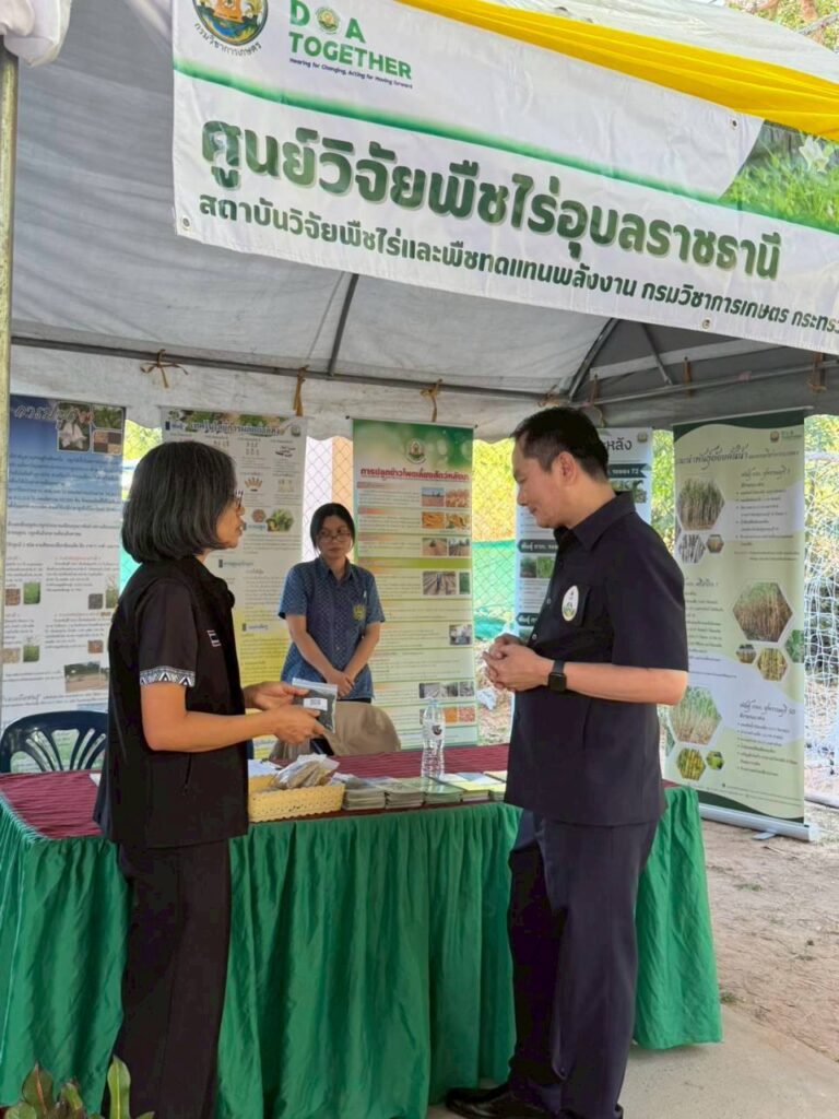 วันที่ 27 มกราคม 2569 นางสาวจิราลักษณ์ ภูมิไธสง ผู้อำนวยการศูนย์วิจัยพืชไร่อุบลราชธานี มอบหมายให้ นางนาตยา จันทร์ส่อง นักวิชาการเกษตรชำนาญการพิเศษ พร้อมด้วย เจ้าหน้าที่ศูนย์วิจัยพืชไร่อุบลราชธานี ร่วมจัดนิทรรศการ และให้บริการคลินิกพืชพร้อมส่งมอบเมล็ดพันธุ์งาดำ พันธุ์ กวก. อุบลราชธานี 3 ถั่วพุ่มเมล็ดดำ พันธุ์ กวก. อุบลราชธานี และเมล็ดข้าวโพดเทียน พันธุ์ กวก. สุโขทัย 1 ให้เกษตรกรที่รับบริการ ในโครงการคลินิกเกษตรเคลื่อนที่ในพระราชานุเคราะห์ สมเด็จพระบรมโอรสาธิราชฯ สยามมกุฎราชกุมาร ครั้งที่ 1 ประจำปีงบประมาณ 2569 โดยมี นายณรงค์ เทพเสนา ผู้ว่าราชการจังหวัดอุบลราชธานี เป็นประธานในพิธีเปิด ณ หอประชุมโรงเรียนเทศบาลแสนสุข อำเภอวารินชำราบ จังหวัดอุบลราชธานี โดยมีผู้เข้ารับบริการ จำนวน 100 ราย