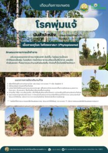 เตือนภัยการเกษตร เกษตรกรผู้ปลูกมันสำปะหลังในระยะปลูกใหม่-สร้างหัว/สะสมแป้ง ให้ระวังการเกิดโรคโคนเน่า หัวเน่า ที่เกิดจากเชื้อรา Phytophthora melonis และมันสำปะหลังในทุกระยะการเจริญเติบโต ให้ระวังการเกิดโรคพุ่มแจ้ ที่เกิดจากเชื้อไฟโตพลาสมา ควรหมั่นสำรวจแปลงปลูกหากเริ่มพบลักษณะอาการหรือการเกิดโรคให้รีบทำการป้องกันกำจัดตามคำแนะนำเพื่อไม่ให้กระทบผลผลิตของมันสำปะหลัง
