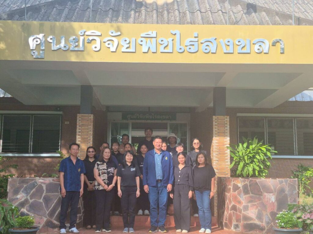 วันที่ 5-6 กุมภาพันธ์ 2569 นายธรรมรัตน์ ทองมี ผู้อำนวยการสถาบันวิจัยพืชไร่และพืชทดแทนพลังงาน ได้ลงพื้นที่เยี่ยมชมและติดตามความก้าวหน้าผลการดำเนินงานวิจัย และโครงการอื่นๆที่ศูนย์วิจัยพืชไร่สงขลารับผิดชอบ โดยมีนางสาวภัทรา กิณเรศ ผู้อำนวยการศูนย์วิจัยพืชไร่สงขลา พร้อมด้วยข้าราชการ พนักงานราชการและเจ้าหน้าที่ของศูนย์ฯ ให้การต้อนรับ ทั้งนี้ ได้มีการเข้าเยี่ยมชมแปลงผลิตเมล็ดพันธุ์ของศูนย์ เช่น ข้าวโพดหวานสงขลา 84-1, ถั่วลิสง, ปาล์มน้ำมัน ถั่วเขียว และแปลงโครงการผลิตท่อนพันธุ์มันสำปะหลังต้านทานโรคโบด่างโครงการวิจัยการคัดเลือกพันธุ์และพัฒนาเทคโนโลยีการผลิตถั่วหรั่งที่เหมาะสมสำหรับแหล่งปลูกภาคใต้( สวก.) และ ตรวจเยี่ยมโครงการพัฒนาศักยภาพตามพื้นที่ แปลงต้นแบบการผลิตอ้อยคั้นน้ำ พันธุ์ศรีสำโรง 1 เพื่อต่อยอดนำไปแปรรูปสุราชุมชน อำเภอเทพา จังหวัดสงขลาและแปลงเกษตรกรผู้ปลูกปาล์มน้ำมัน โครงการ สกสว. 10% ปี 2565