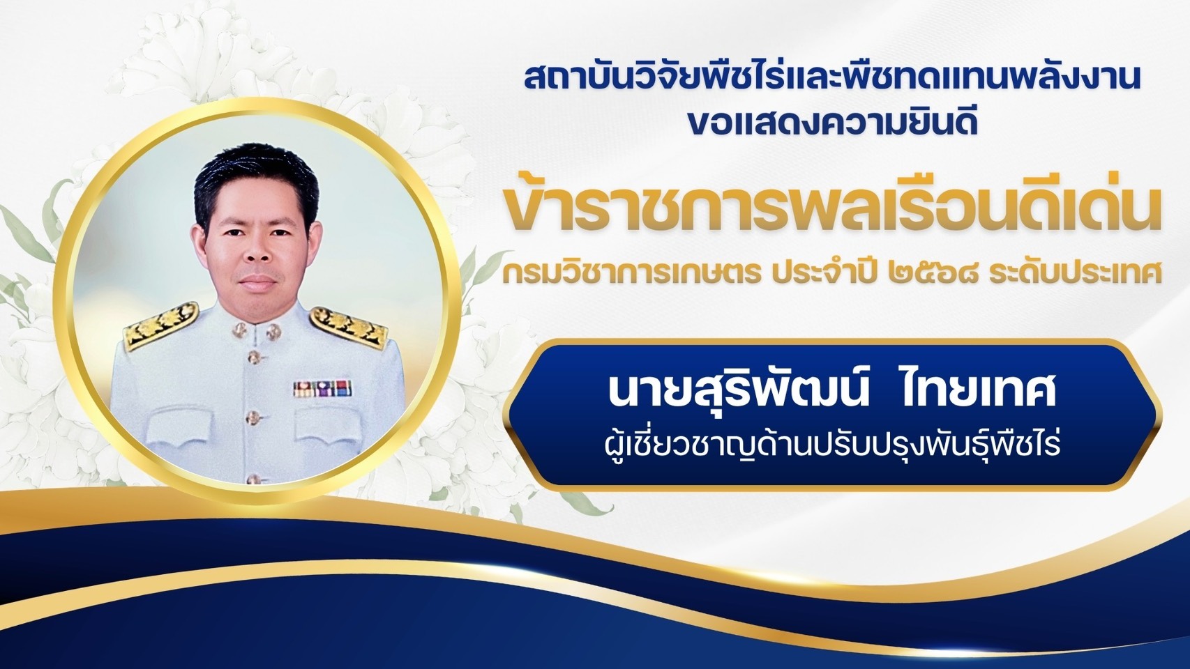 ข่าวประชาสัมพันธ์ สถาบันวิจัยพืชไร่และพืชทดแทนพลังงาน ขอแสดงความยินดี ข้าราชการพลเรือนดีเด่น กรมวิชาการเกษตร ประจำปี 2568 ระดับประเทศ 25/03/2026 admin