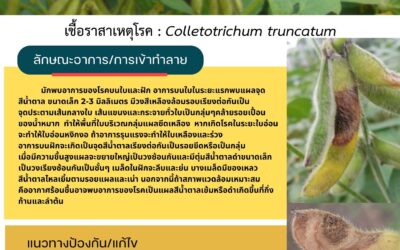 เตือนภัยพืช 17/11/2025 admin เตือนภัยการเกษตร เกษตรกรผู้ปลูกถั่วเหลืองให้ระวังการเกิดโรคแอนแทรคโนส ที่เกิดจากเชื้อรา Colletotrichum truncatum หากเกษตรกรเริ่มพบการเกิดโรค ให้รีบทำการป้องกันกำจัดตามคำแนะนำ เพื่อไม่ให้ส่งผลกระทบต่อผลผลิตถั่วเหลือง Read More