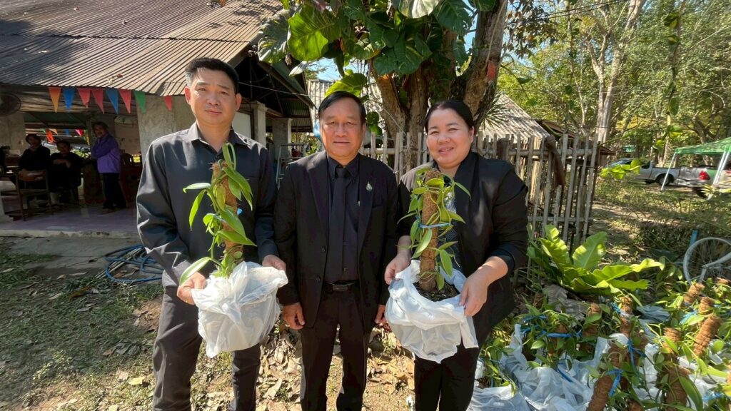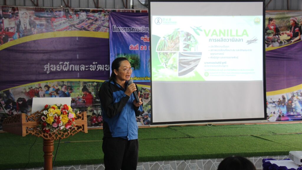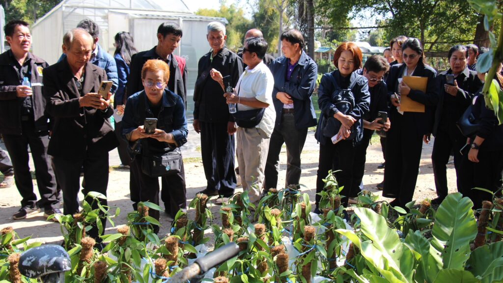 วันที่ 21 มกราคม 2569 นายสำเริง ช่างประเสริฐ ผู้อำนวยการศูนย์วิจัยพืชสวนจันทบุรี มอบหมายให้นางสาวอรวินทินี ชูศรี นักวิชาการเกษตรชำนาญการ นายณัฐชัย สัทธยาสัย นักวิชาการเกษตร และนายวิรัตน์ ชูเวช คนงานทดลองเกษตร เป็นวิทยากรบรรยายความรู้ และสาธิตการปลูกวานิลลา ในการอบรมเชิงปฏิบัติการ “โครงการเรียนรู้การปลูกพืชเศรษฐกิจ ต้นวานิลลา เชิงอาชีพแบบครบวงจร” ประจำปีงบประมาณ พ.ศ.2569 และอนุเคราะห์ต้นวานิลลา จำนวน 50 ต้น เพื่อใช้ในการฝึกอบรมแก่คณะครูศูนย์การเรียนรู้ และประชาชนในพื้นที่จังหวัดเชียงรายและพะเยา รวม 60 คน โดยมีนางคนึงนิตย์ วันนิตย์ ผู้อำนวยการสำนักงานส่งเสริมการเรียนรู้ประจำจังหวัดเชียงรายเป็นประธานในพิธีเปิด ณ ศูนย์ฝึกและพัฒนาอาชีพราษฎรไทยบริเวณชายแดนเชียงราย อำเภอเชียงแสน จังหวัดเชียงราย