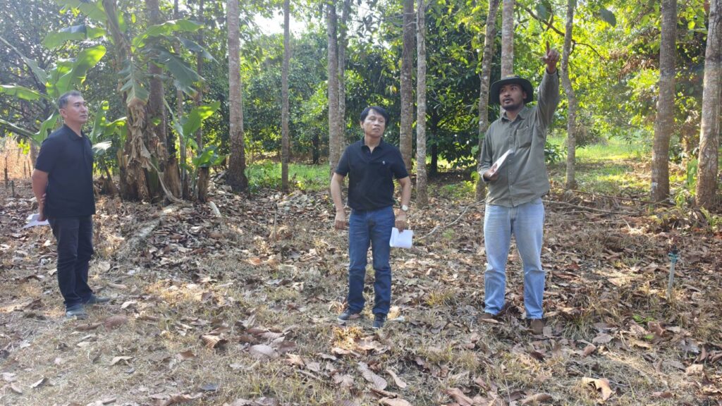 วันที่ 27 มกราคม 2569 นายสำเริง ช่างประเสริฐ ผู้อำนวยการศูนย์วิจัยพืชสวนจันทบุรี พร้อมด้วยนางสาวดาวนภา ช่องวารินทร์ นักวิชาการเกษตรชำนาญการพิเศษ และนายอานันต์ ศรีสวัสดิ์ เจ้าพนักงานการเกษตรปฏิบัติงาน เข้าติดตามงานโครงการพัฒนาระบบการปลูกพืชผสมผสานในพื้นที่โครงการศูนย์พัฒนาไม้ผลตามพระราชดำริ จังหวัดจันทบุรี พื้นที่ดูแลแปลงระบบผสม ได้แก่ การปลูกพืช ๕ ระดับ และกิจกรรมอนุรักษ์พันธุกรรมไม้ผลพื้นเมืองจันทบูร รวมพื้นที่ ๔ ไร่ ณ ศูนย์ศึกษาการพัฒนาไม้ผลอันเนื่องมาจากพระราชดำริ ต.ท่าหลวง อ.มะขาม จ.จันทบุรี