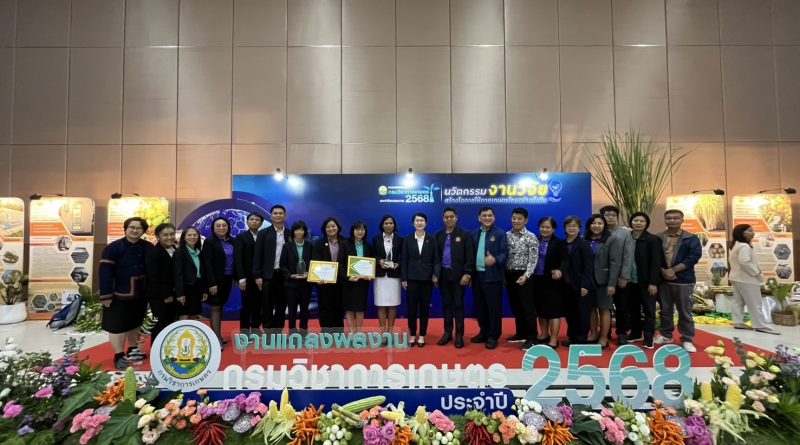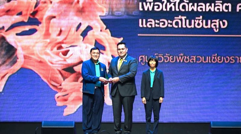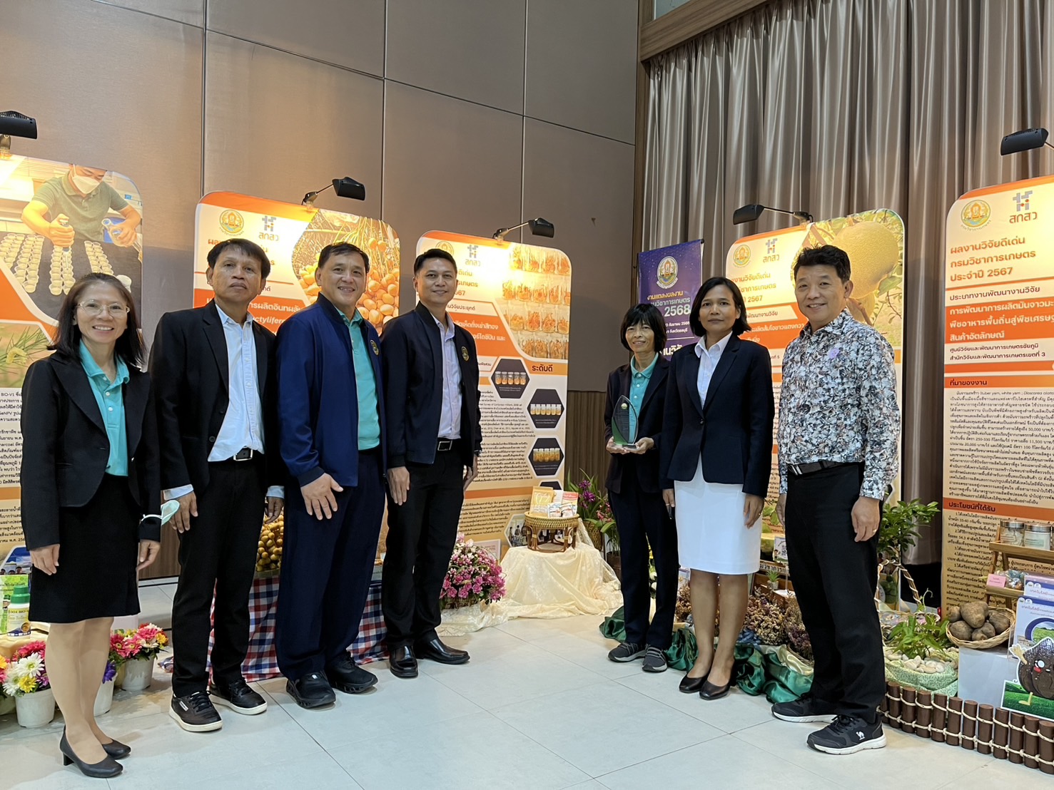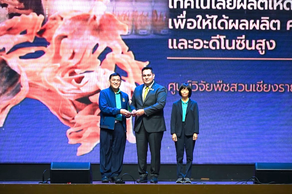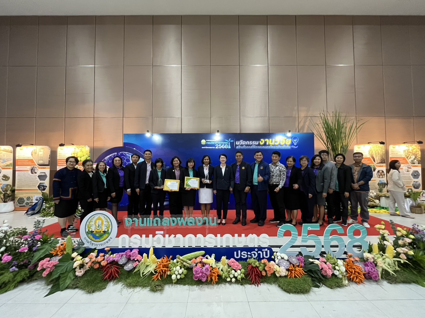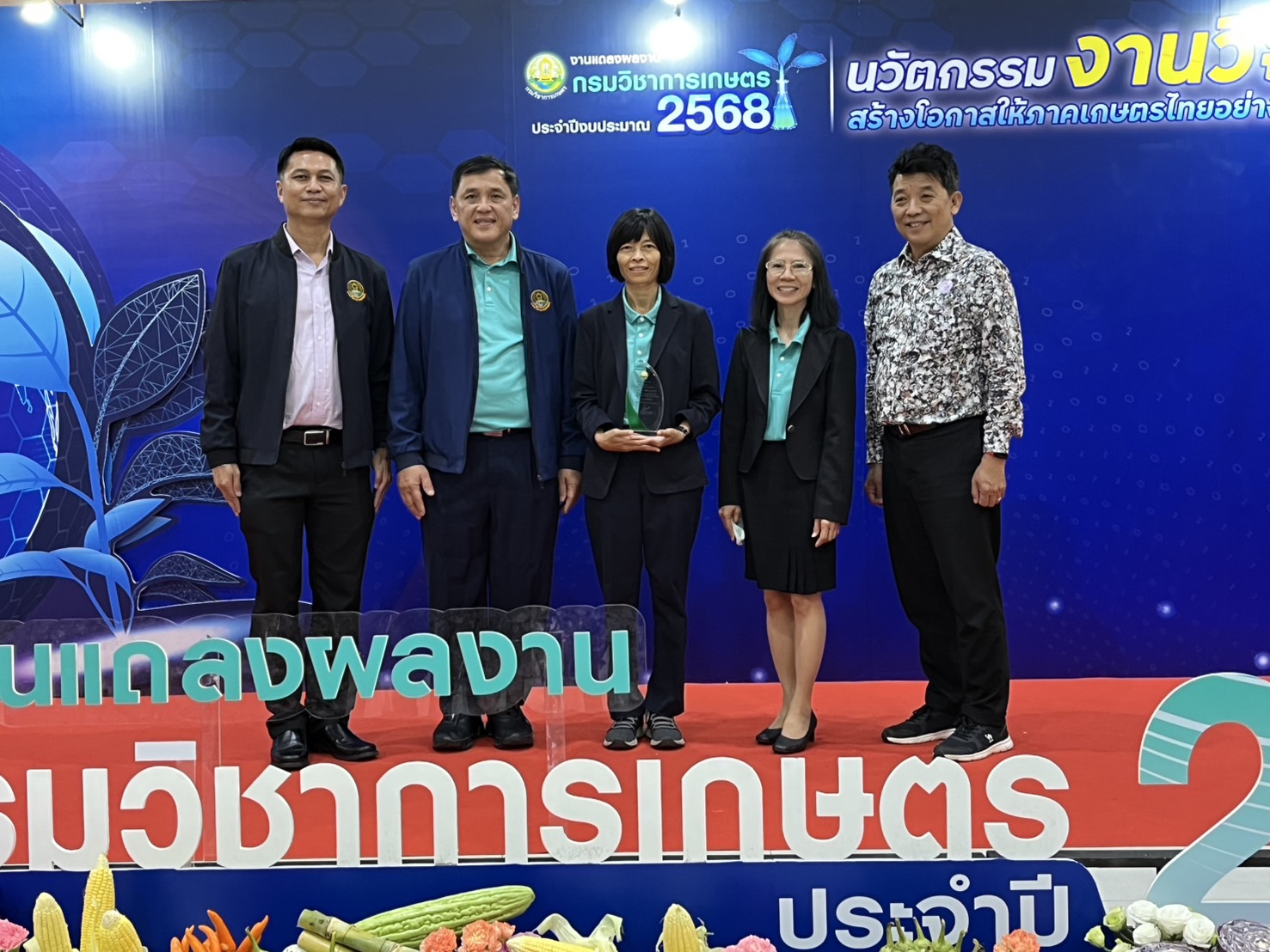 วันที่ ๒๘-๓๐ กันยายน ๒๕๖๘ นายกฤชพร ศรีสังข์ ผู้อำนวยการศูนย์วิจัยพืชสวนเชียงราย พร้อมด้วยข้าราชการของศูนย์วิจัยพืชสวนเชียงราย เข้าร่วมรับรางวัลผลงานวิจัยดีเด่นประเภทงานวิจัยประยุกต์ระดับดี และรางวัลเลิศรัฐ ประจำปี ๒๕๖๘ สาขาบริการภาครัฐ ประเภทขับเคลื่อนเห็นผล ในงานแถลงผลงานกรมวิชาการเกษตร นวัตกรรมงานวิจัย สร้างโอกาสให้ภาคเกษตรไทยอย่างยั่งยืน Innovation Research for Sustainable Thai Agriculture การจัดงานครั้งนี้เป็นเวทีสำคัญในการเผยแพร่ผลงานวิจัยและนวัตกรรม ช่วยเพิ่มคุณภาพผลผลิต ความต้านทานโรคและแมลงศัตรูพืช รวมถึงการพัฒนาด้านโภชนาการเพื่อความมั่นคงทางอาหาร ลดต้นทุนการผลิต เสริมรายได้ให้เกษตรกร เชื่อมโยงผู้วิจัยกับผู้ใช้ประโยชน์ และขับเคลื่อนการเกษตรไทยสู่ความมั่นคง มั่งคั่ง และยั่งยืน ณ ห้องประชุม Tradition Hall สวนนงนุช พัทยา จังหวัดชลบุรี