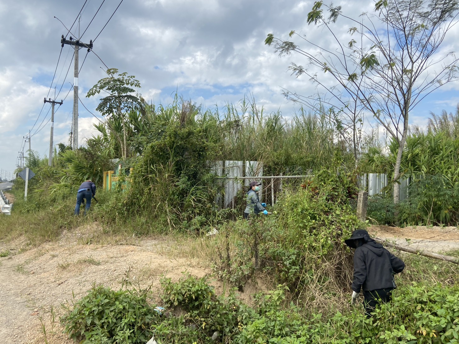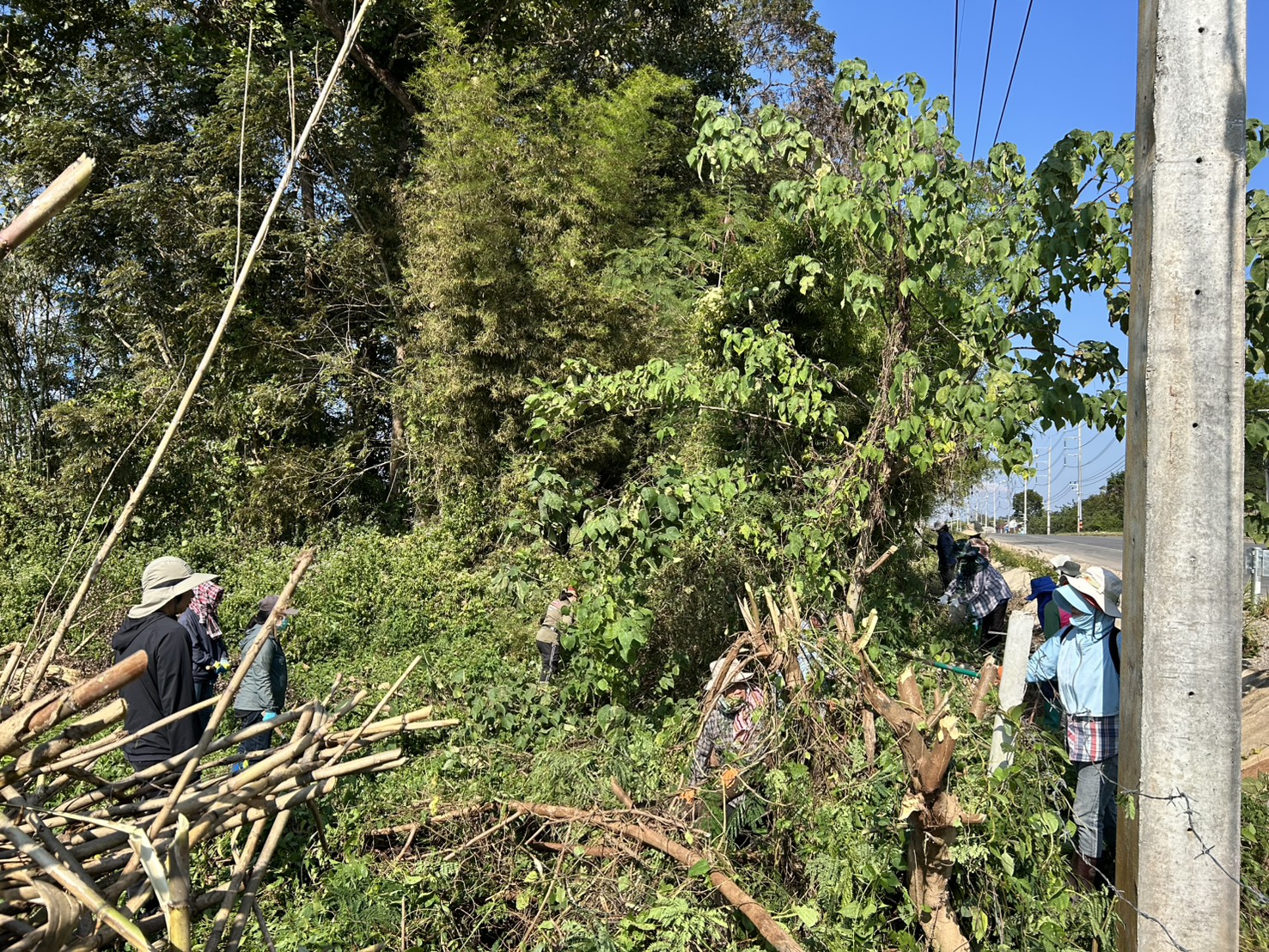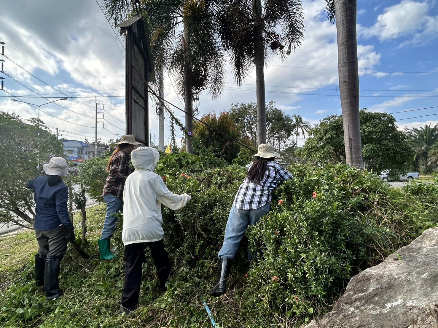 กิจกรรมพัฒนาปรับปรุงภูมิทัศน์ โดยการตัดหญ้าและทำความสะอาดบริเวณข้างถนนของหน่วยงาน