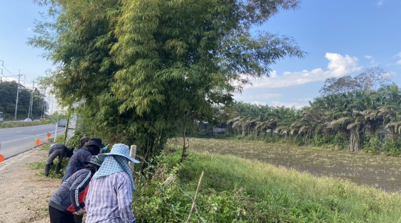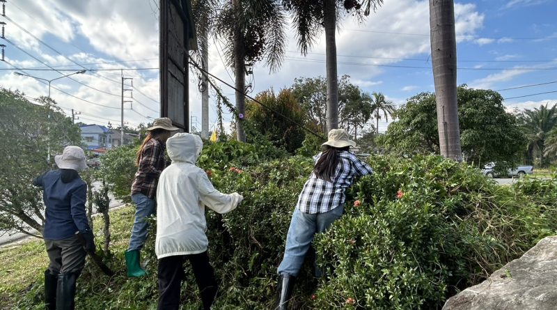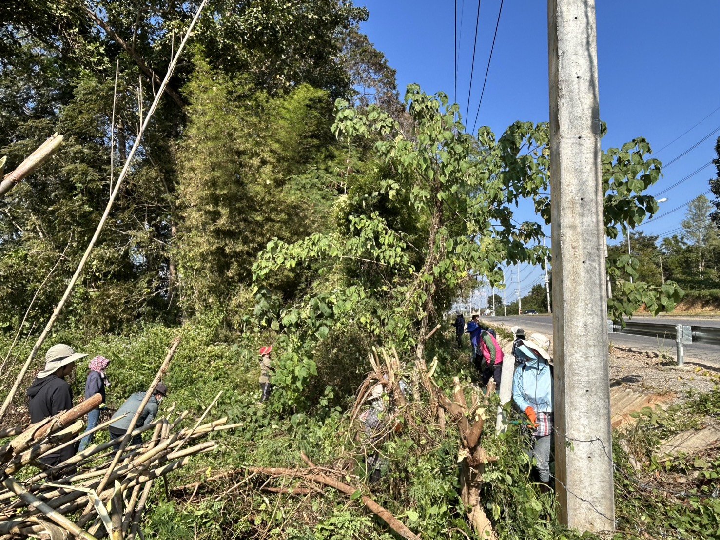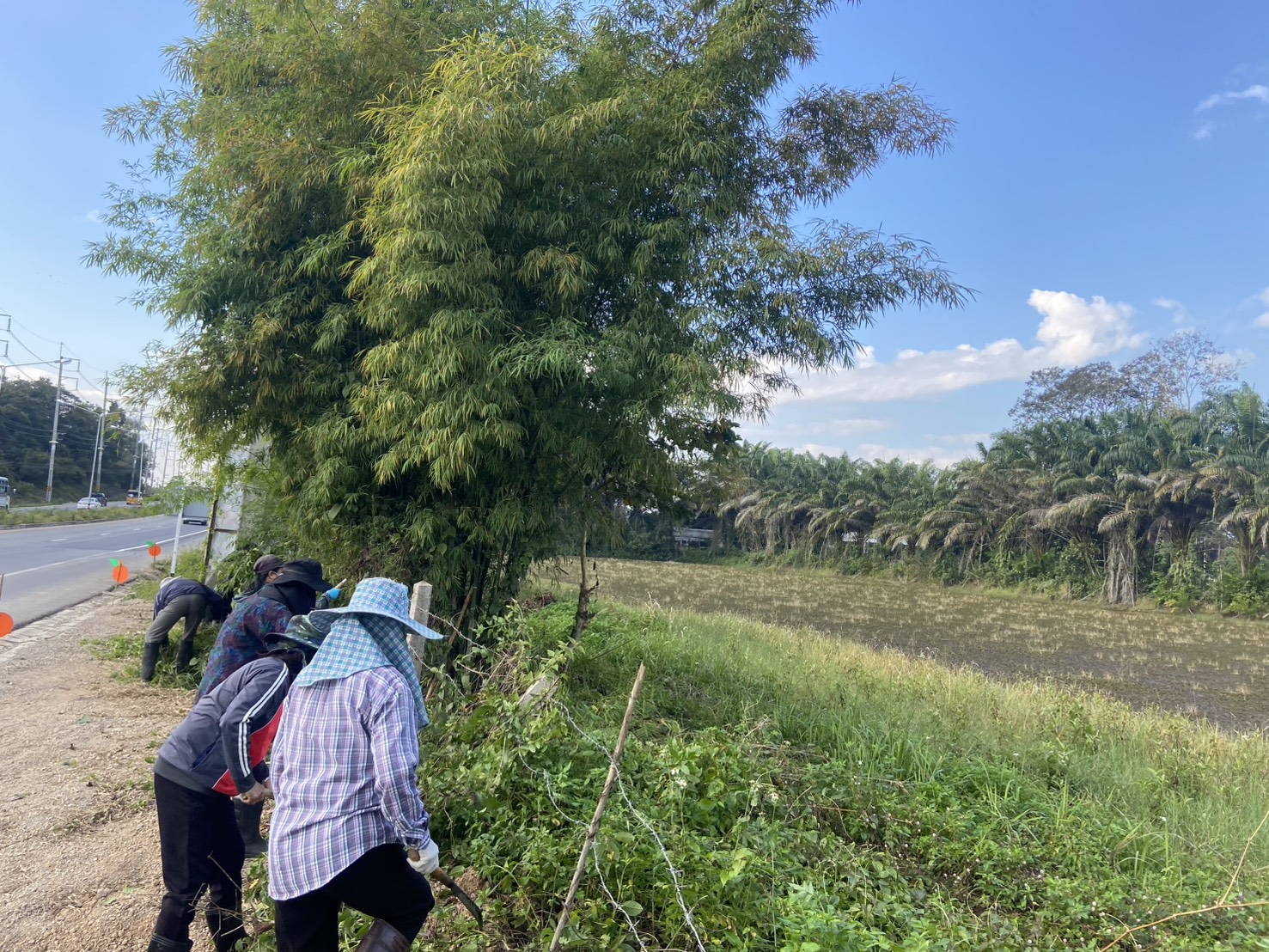 กิจกรรมพัฒนาปรับปรุงภูมิทัศน์ โดยการตัดหญ้าและทำความสะอาดบริเวณข้างถนนของหน่วยงาน