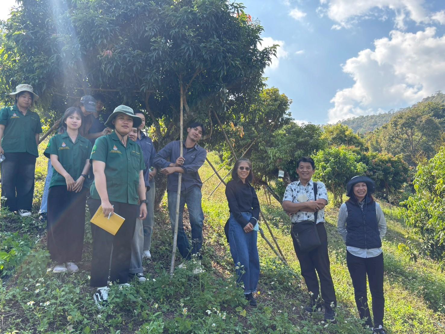 โดยมีนายกฤชพร ศรีสังข์ ผู้อำนวยการศูนย์วิจัยพืชสวนเชียงรายและนักวิชาการเกษตรของศูนย์วิจัย ฯ ให้การต้อนรับ เยี่ยมชมงานแปรรูปสมุนไพร บริษัท พรีเมียร์ อินโนว่า จำกัด และกลุ่มวิสาหกิจชุมชนบ้านสมุนไพรใจทิพย์ เพื่อศึกษากระบวนการเพิ่มมูลค่าจากพืชสมุนไพรในท้องถิ่นในระดับชุมชนและการผลิตเชิงอุตสาหกรรม รวมถึงการหารือแนวทางความร่วมมือด้านการวิจัยต่อไปและได้ติดตามความก้าวหน้างานวิจัยลิ้นจี่ ซึ่งเป็นแปลงทดสอบลิ้นจี่พันธุ์ใหม่ของศูนย์วิจัย ฯ มีลิ้นจี่คุณภาพ และกลุ่มพันธุ์เบา ซึ่งประสบความสำเร็จเป็นอย่างดี โดยเริ่มแทงช่อดอกและเกษตรกรให้การตอบรับเป็นอย่างดี พร้อมให้คำแนะนำทางวิชาการ ณ แปลงเกษตรกรอำเภอแม่ใจ จังหวัดพะเยา การลงพื้นที่ครั้งนี้มีบุคลากรของศูนย์วิจัยพืชสวนเชียงราย และมีนักศึกษาจากมหาวิทยาลัยเทคโนโลยีราชมงคลล้านนาน่าน มหาวิทยาลัยแม่โจ้ เข้าร่วมศึกษาดูงาน