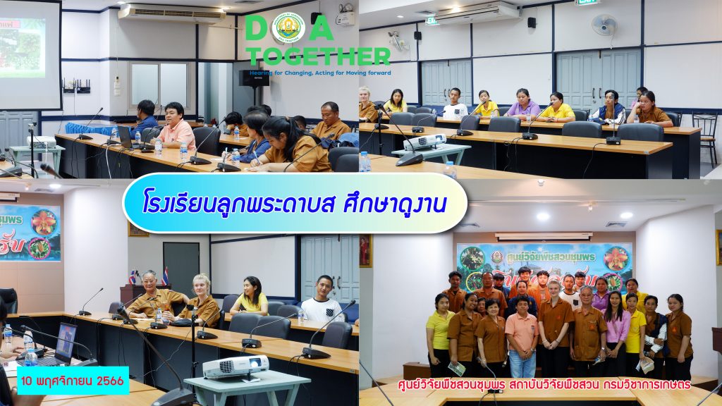 วันที่ 29 พฤศจิกายน 2566 เวลา 13.30 น. ผู้อำนวยการศูนย์วิจัยพืชสวนชุมพร มอบหมายให้ นางสาวดารากร เผ่าชู นักวิชาการเกษตรชำนาญการ เข้าร่วมประชุม หารือผลการดำเนินงานการส่งเสริมการปลูกกาแฟของบริษัท OR ในจังหวัดน่านและชุมพร […]