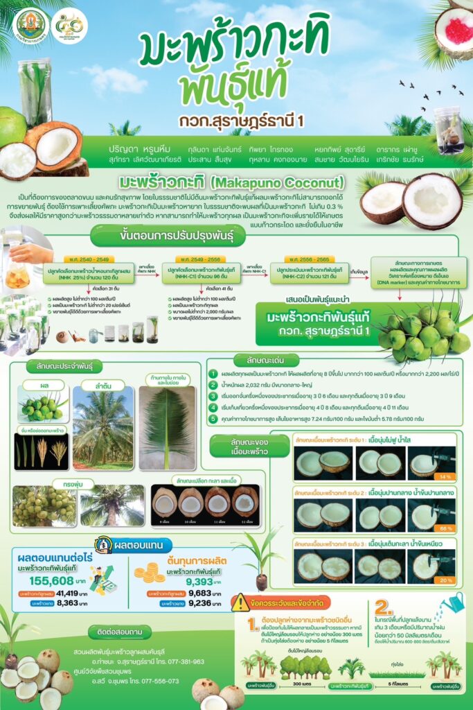 ในวันที่ 31 มกราคม 2567 ซึ่งนางสาวทิพยา ไกรทอง ผู้อำนวยการศูนย์วิจัยพืชสวนชุมพร พร้อมด้วยนางสาวกุลินดา แท่นจันทร์ นักวิชาการเกษตรชำนาญการ ศูนย์วิจัยพืชสวนชุมพร ร่วมจัดนิทรรศการถ่ายทอดเทคโนโลยีการเพิ่มประสิทธิภาพการผลิตพันธุ์มะพร้าวกะทิ ภายใต้กิจกรรมวันถ่ายทอดเทคโนโลยี 76 จังหวัด 76 โมเดล การผลิตสินค้าเกษตรมูลค่าสูง “ตรังโมเดล