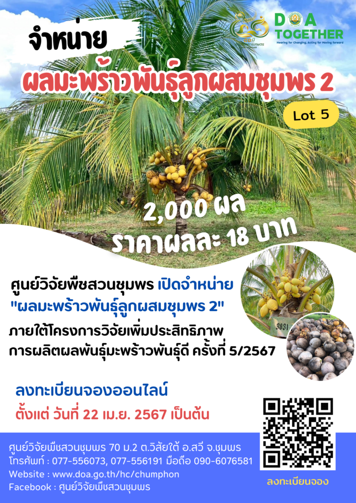 จำหน่ายผลมะพร้าวลูกผสมชุมพร 2 ครั้งที่ 5/2567