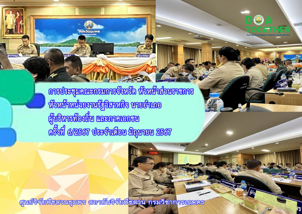 วันที่ 27 มิถุนายน 2567 นางสาวทิพยา ไกรทอง ผู้อำนวยการศูนย์วิจัยพืชสวนชุมพร มอบหมายให้ นางสาวอรทัย ธนัญชัย นักวิชาการเกษตรชำนาญการ ร่วมเป็นวิทยากรถ่ายทอดความรู้ให้เกษตรกร ในหลักสูตร “ เกษตรกรรมเชิงฟื้นฟูสำหรับเกษตรกรผู้ปลูกกาแฟ ” ณ ศาลาหมู่บ้านทุ่งคอกช้าง หมู่ที่ […]