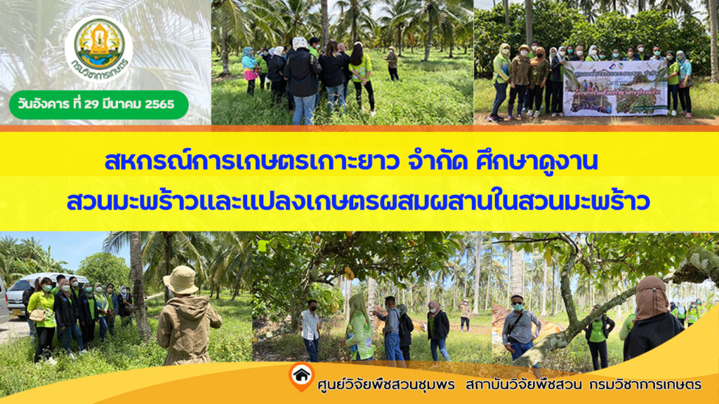 สหกรณ์การเกษตรเกาะยาว จำกัด ศึกษาดูงานเกี่ยวกับสวนมะพร้าวและแปลงเกษตรผสมผสานในสวนมะพร้าว