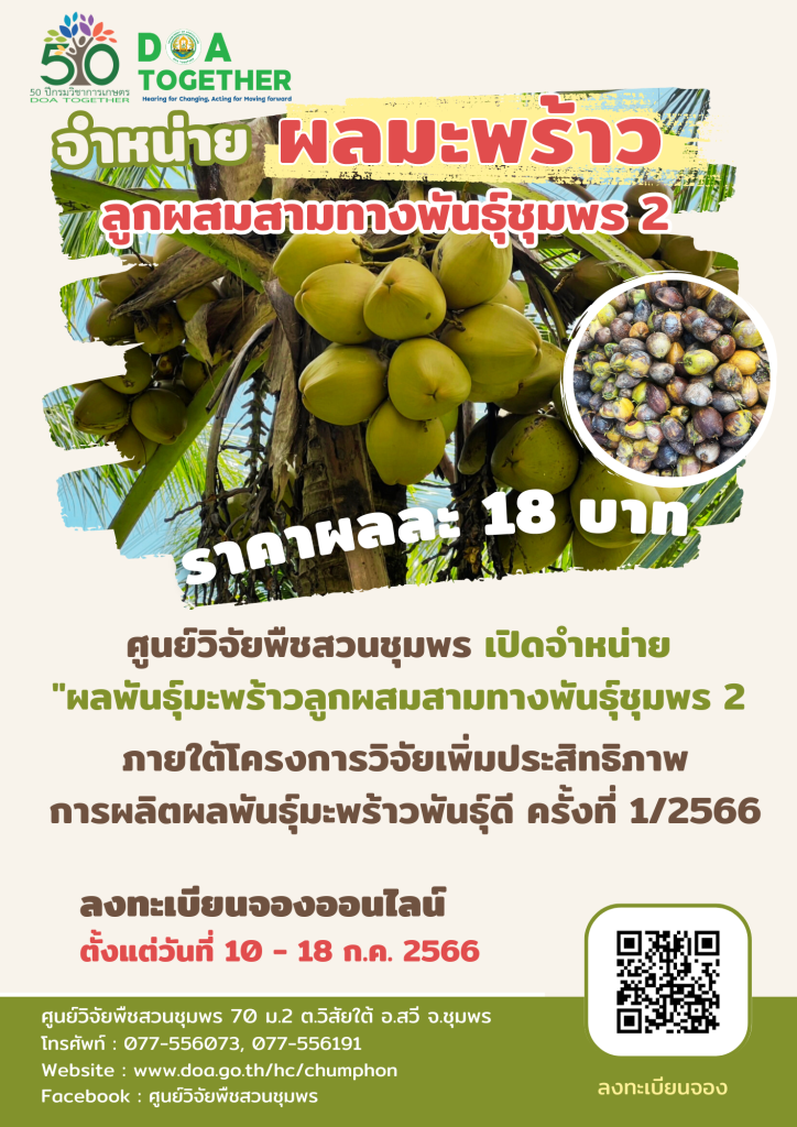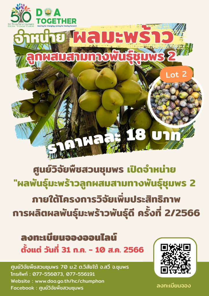 จำหน่ายผลพันธุ์มะพร้าวลูกผสมสามทางพันธุ์ชุมพร 2 (Lot 2)