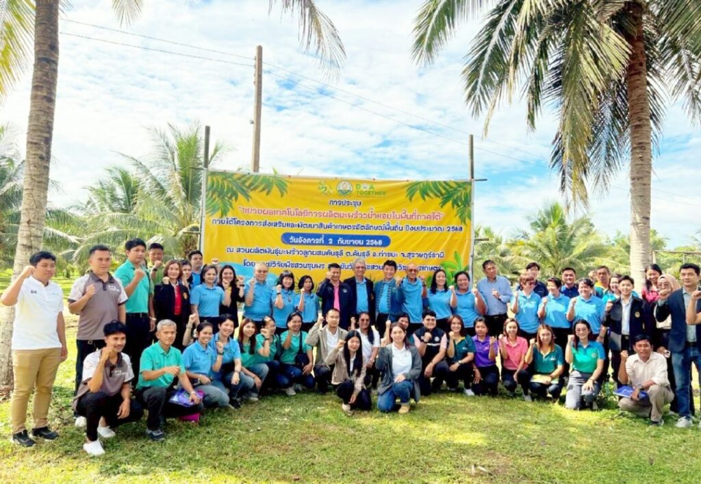 วันอังคารที่ 2 กันยายน 2568 นางสาวทิพยา ไกรทอง ผู้อำนวยการศูนย์วิจัยพืชสวนชุมพร และนักวิชาการที่เกี่ยวข้อง เข้าร่วมการประชุม“ขยายผลเทคโนโลยีการผลิต มะพร้าวน้ำหอมในพื้นที่ภาคใต้” โดยได้รับเกียรติจากที่ปรึกษากรมวิชาการเกษตร 4 ท่าน คือ นางปิยนุช นาคะ นายอานุภาพ ธีระกุล นายสมชาย […]
