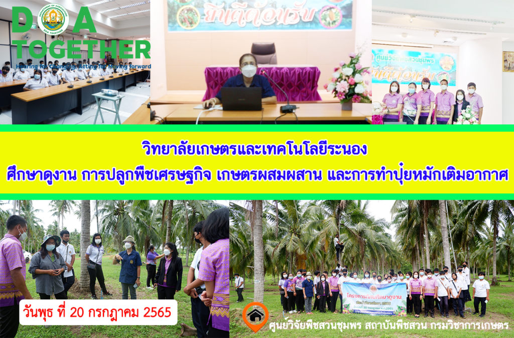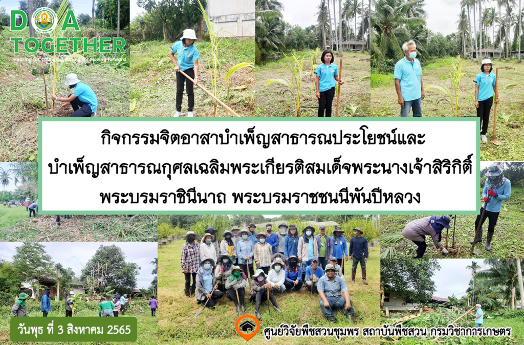 วันพุธ ที่ 10 สิงหาคม และ วันพฤหัสบดี ที่ 11 สิงหาคม พ.ศ. 2565 ผู้อำนวยการศูนย์วิจัยพืชสวนชุมพร มอบหมายให้ นางสาวสุภาพร ชุมพงษ์ ผู้อำนวยการกลุ่มวิจัย และ นางสาวดารากร เผ่าชู นักวิชาการเกษตรชำนาญการ […]