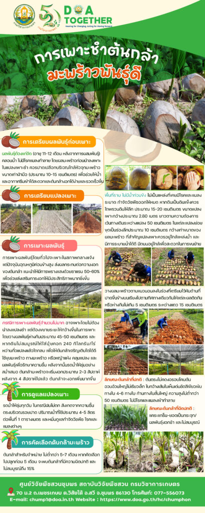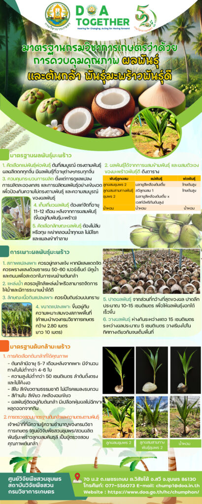 โปสเตอร์/อินโฟกราฟฟิกส์มาตรฐานกรมวิชาการเกษตรว่าด้วยการควบคุมคุณภาพ ผลพันธุ์และต้นกล้าพันธุ์มะพร้าวพันธุ์ดี Pitchayapa Chrc / 10 January 2568