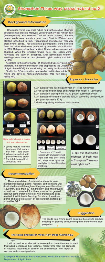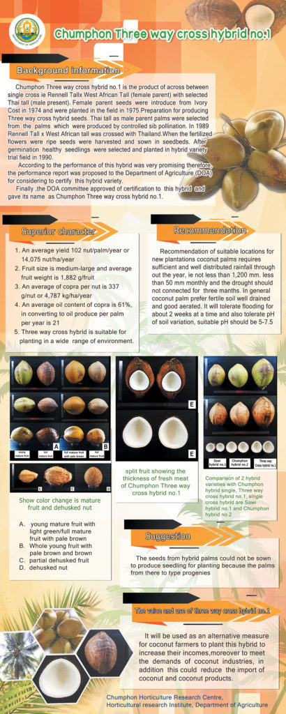 การผลิตพันธุ์มะพร้าว ลูกผสมสามทางพันธุ์ชุมพร 2