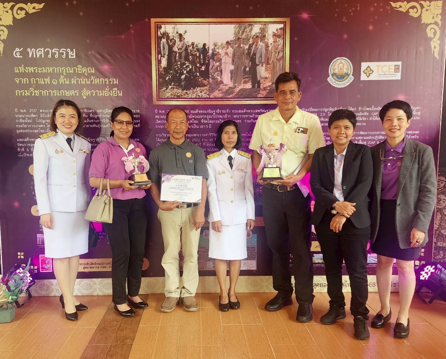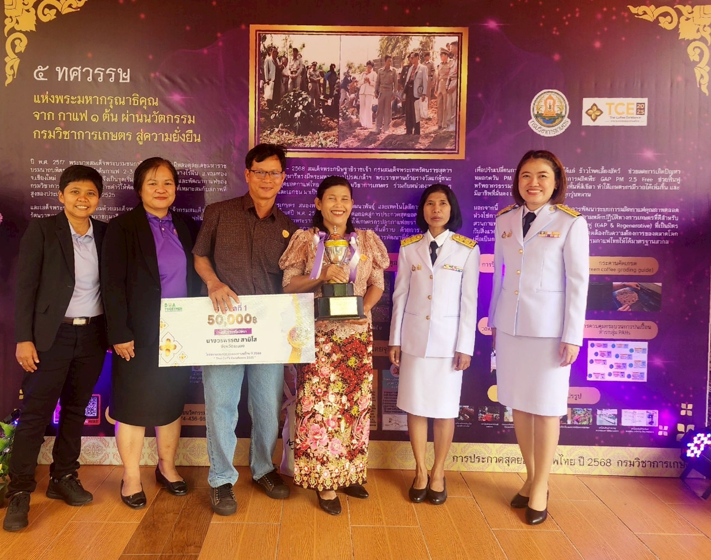 โดยมี นายอามินทร์ มะยูโซ๊ะ รัฐมนตรีช่วยว่าการกระทรวงเกษตรและสหกรณ์ เป็นประธานพิธีมอบถ้วยรางวัลพระราชทานจากสมเด็จพระกนิษฐาธิราชเจ้า กรมสมเด็จพระเทพรัตนราชสุดาฯ สยามบรมราชกุมารี แก่ผู้ชนะการประกวดสุดยอดกาแฟไทย ปี 2568 (Thai Coffee Excellence 2025) ณ สวนนงนุช พัทยา จังหวัดชลบุรี ซึ่งการจัดงานดังกล่าว มีวัตถุประสงค์เพื่อเทิดพระเกียรติพระบาทสมเด็จพระบรมชนกาธิเบศร มหาภูมิพลอดุลยเดชมหาราช บรมนาถบพิตร และสมเด็จพระกนิษฐาธิราชเจ้า กรมสมเด็จพระเทพรัตนราชสุดาฯ สยามบรมราชกุมารี พร้อมทั้งเผยแพร่อัตลักษณ์กาแฟไทย เพิ่มพื้นที่ปลูกกาแฟคุณภาพ ลดปัญหาหมอกควัน PM 2.5 และยกระดับศักยภาพเกษตรกรไทยสู่การผลิตที่มีมาตรฐานสากล ตามแนวคิดเศรษฐกิจชีวภาพ–หมุนเวียน–สีเขียว (BCG Economy) เพื่อการพัฒนาที่ยั่งยืน (SDGs)