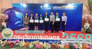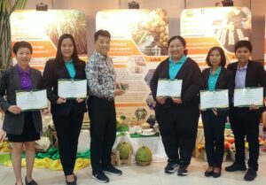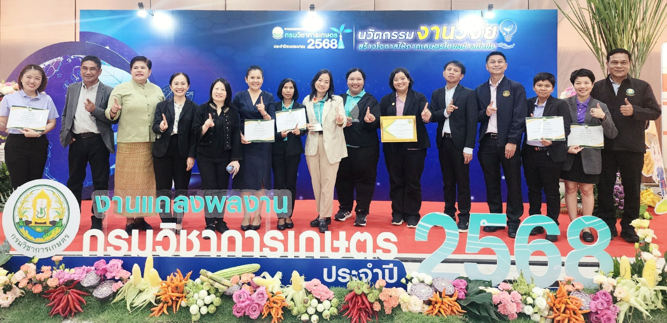 ระหว่างวันที่ 28-30 กันยายน พ.ศ. 2568 นางสาวทิพยา ไกรทอง ผู้อำนวยการศูนย์วิจัยพืชสวนชุมพร และนักวิชาการที่เกี่ยวข้อง ร่วมงานแถลงผลงานวิจัย กรมวิชาการเกษตร ประจำปีงบประมาณ 2568 ภายใตัหัวข้อ “นวัตกรรมงานวิจัย สร้างโอกาสให้ภาคเกษตรไทยอย่างยั่งยืน” Innovation Research for Sustainable Thai Agriculture โดยศูนย์วิจัยพืชสวนชุมพร ได้รับรางวัลผลงานวิจัย ประเภทงานวิจัยปรับปรุงพันธุ์ “ระดับดี” เรื่อง มะพร้าวกะทิพันธุ์แท้ พันธุ์ กวก.สุราษฎร์ธานี 1 พืชเศรษฐกิจใหม่สร้างรายได้แบบก้าวกระโดด และเข้าร่วมรับฟังการบรรยายผลงานวิจัยด้านต่างๆของหน่วยงานกรมวิชาการเกษตร ณ ห้องประชุม Tradition Hall สวนนงนุช พัทยา จังหวัดชลบุรี