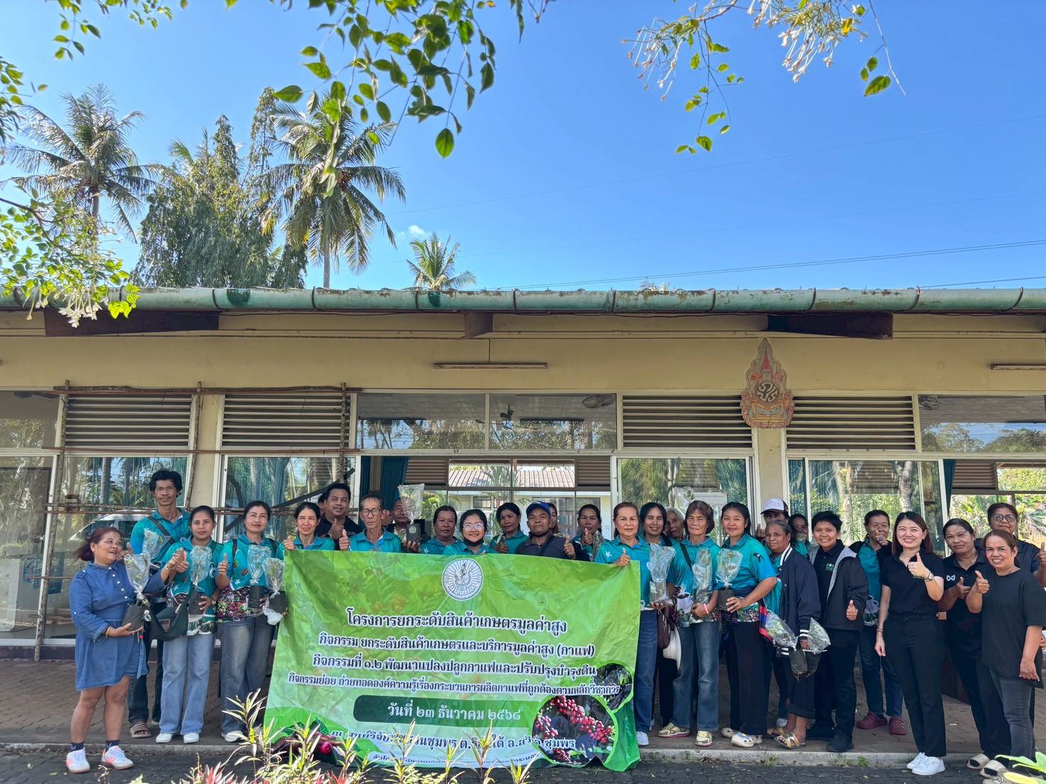 วันอังคารที่ 23 ธันวาคม พ.ศ. 2568 นางสาวดารากร เผ่าชู นักวิชาการเกษตรชำนาญการ นาวสาวอรทัย ธนัญชัย นักวิชาการเกษตรชำนาญการ และนายวโรดม ฉายากุล นักวิชาการเกษตร เป็นวิทยากรบรรยายให้ความรู้แก่ผู้เข้ารับการอบรม ภายใต้ โครงการยกระดับสินค้าเกษตรมูลค่าสูง กิจกรรม ยกระดับสินค้าเกษตรและบริการมูลค่าสูง(กาแฟ) กิจกรรมที่1.2 พัฒนาแปลงปลูกกาแฟและปรับปรุงบำรุงดิน กิจกรรมย่อย ถ่ายทอดองค์ความรู้เรื่องกระบวนการผลิตกาแฟที่ถูกต้องตามหลักวิชาการ จัดโดย สำนักงานเกษตรอำเภอกะเปอร์ จังหวัดระนอง ณ ศูนย์วิจัยพืชสวนชุมพร อ.สวี จ.ชุมพร