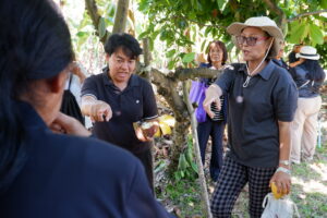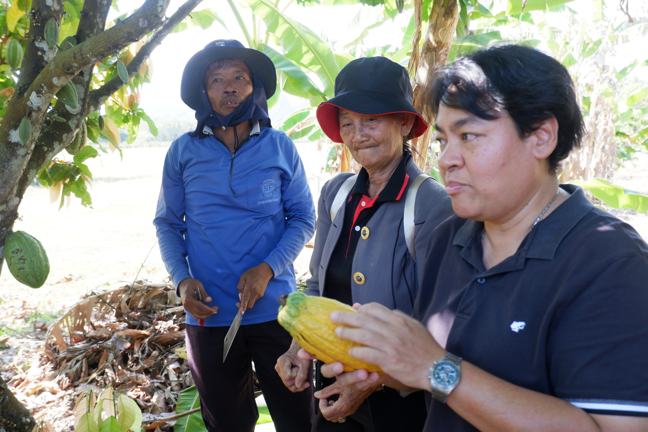 เป้าหมายเกษตรกรผู้ปลูกโกโก้ อำเภอท่าศาลา จังหวัดนครศรีธรรมราช และเจ้าหน้าที่ จำนวน 27 ราย