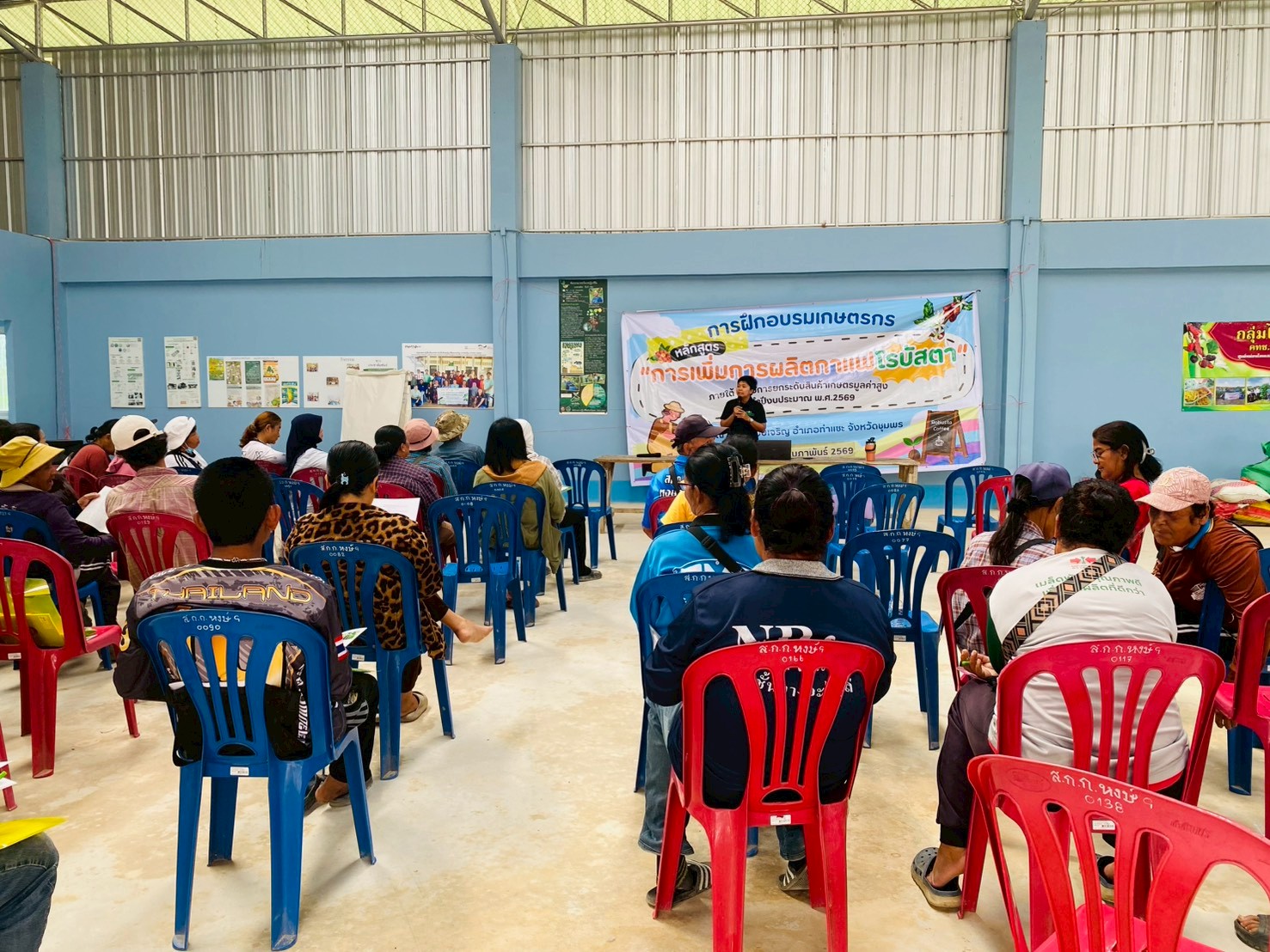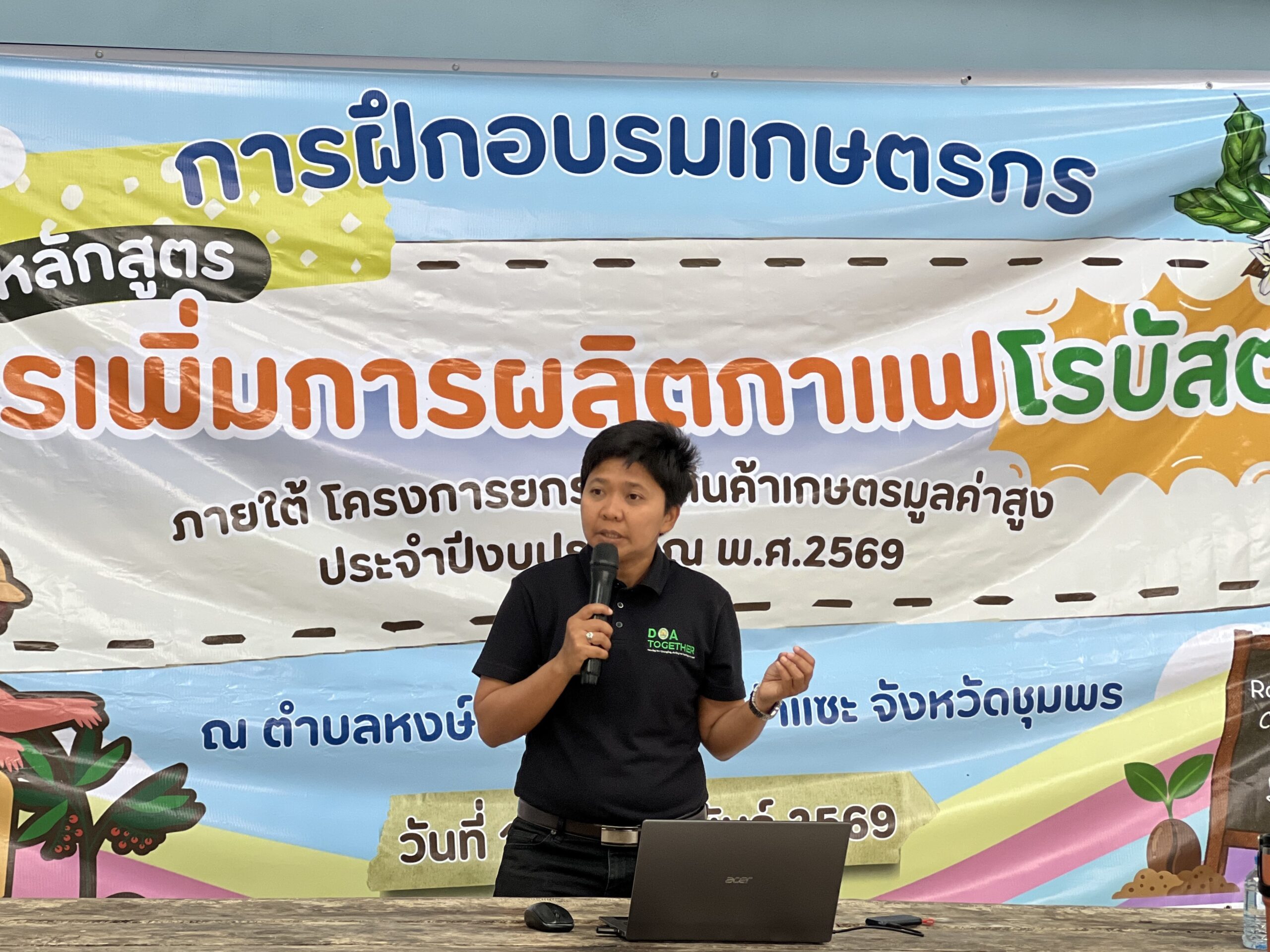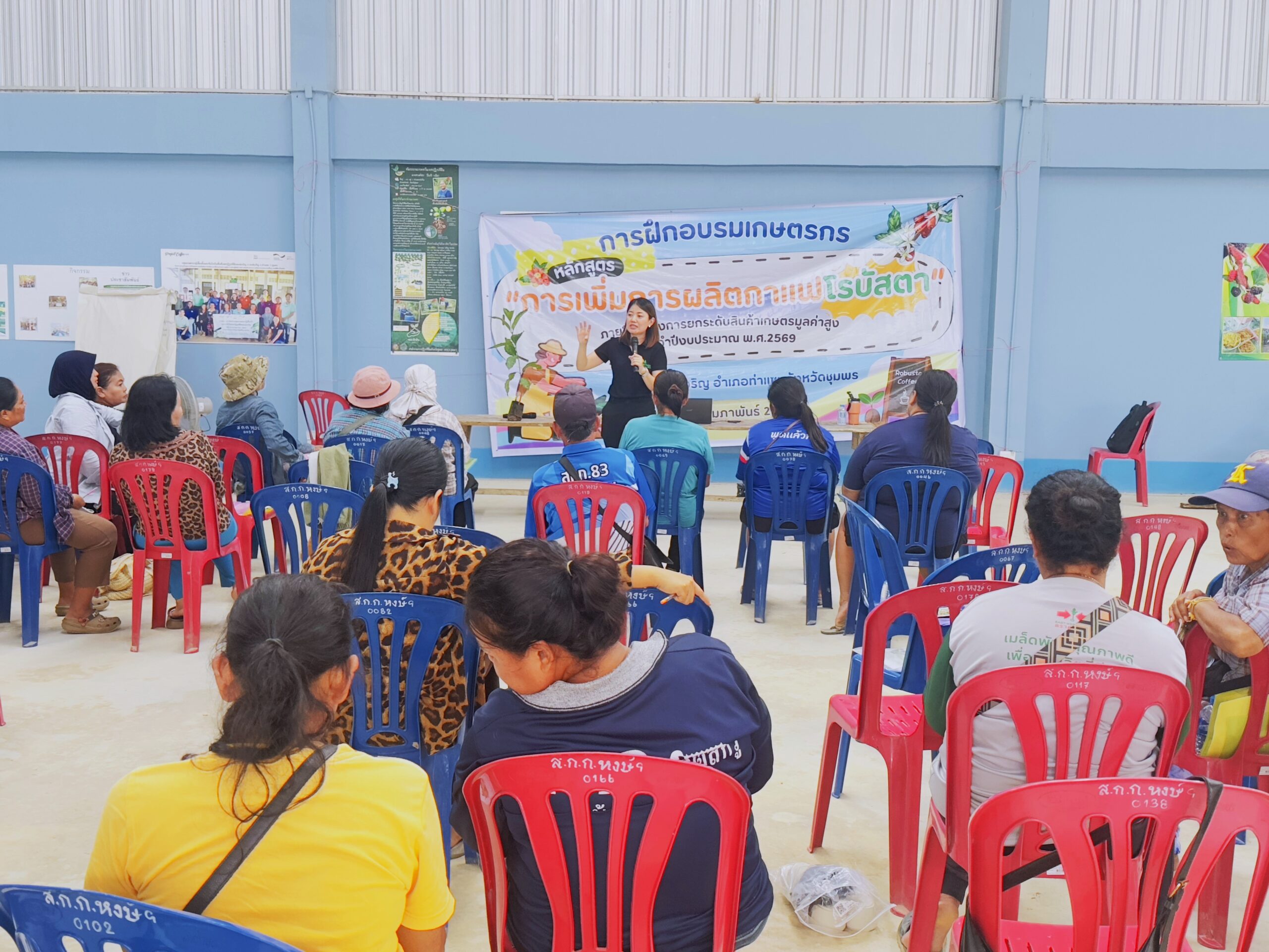 ในวันที่ 18 กุมภาพันธ์ 2569 นางสาวดารากร เผ่าชู นักวิชาการเกษตรชำนาญการ นางสาวอรทัย ธนัญชัย นักวิชาการเกษตรชำนาญการ และนางสาวพันธ์ทิพย์ มีสถิตย์ นักวิชาการเกษตรปฏิบัติการ ศูนย์วิจัยพืชสวนชุมพร เป็นวิทยากรให้ความรู้การจัดฝึกอบรม หลักสูตร “การเพิ่มการผลิตกาแฟโรบัสตา” ภายใต้ โครงการยกระดับสินค้าเกษตรมูลค่าสูง ประจำปีงบประมาณ พ.ศ.2569 โดยมีเป้าหมายเกษตรกรผู้ปลูกกาแฟโรบัสตาจำนวน 50 คน ณ ตำบลหงษ์เจริญ อำเภอท่าแซะ จังหวัดชุมพร