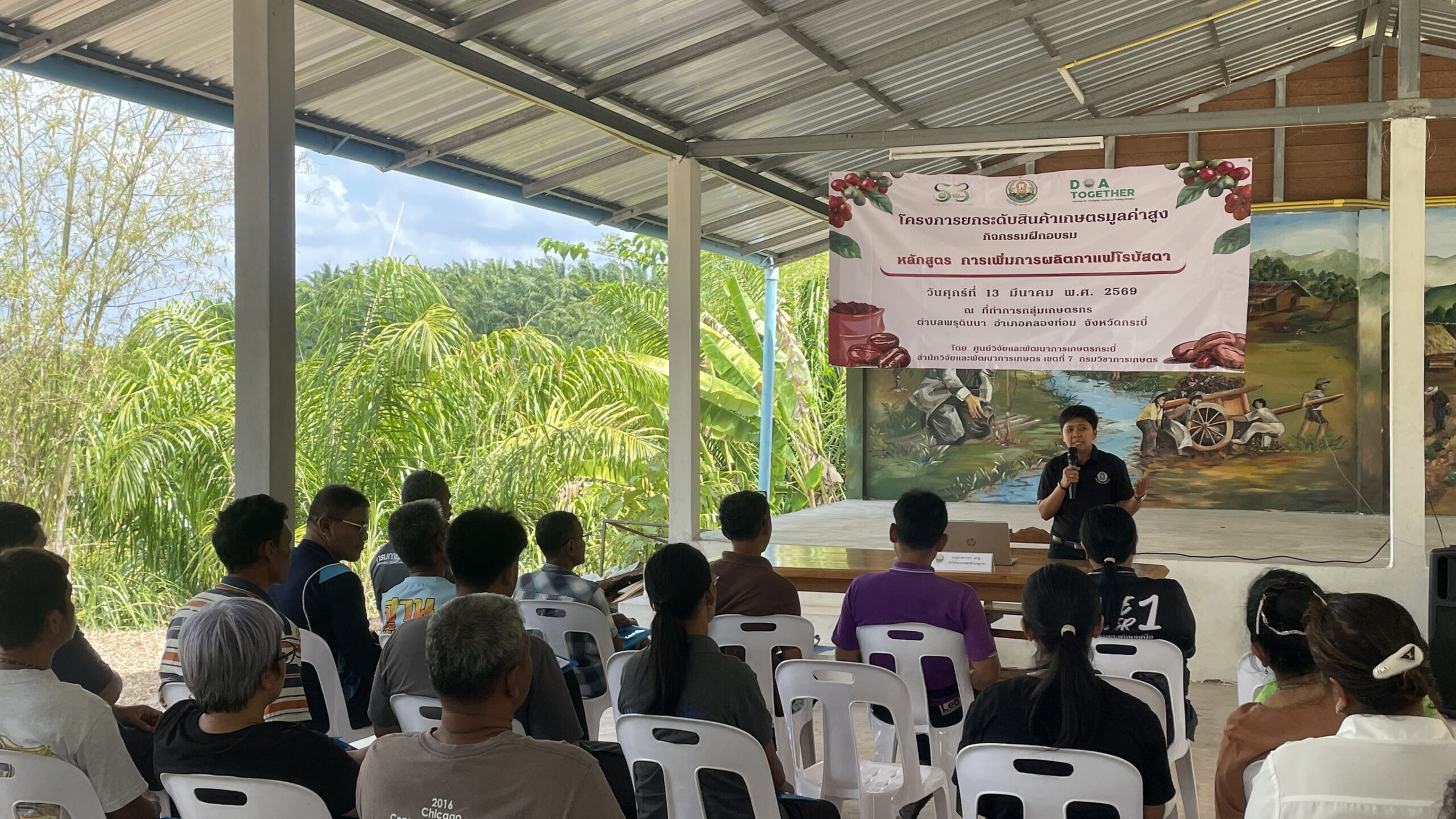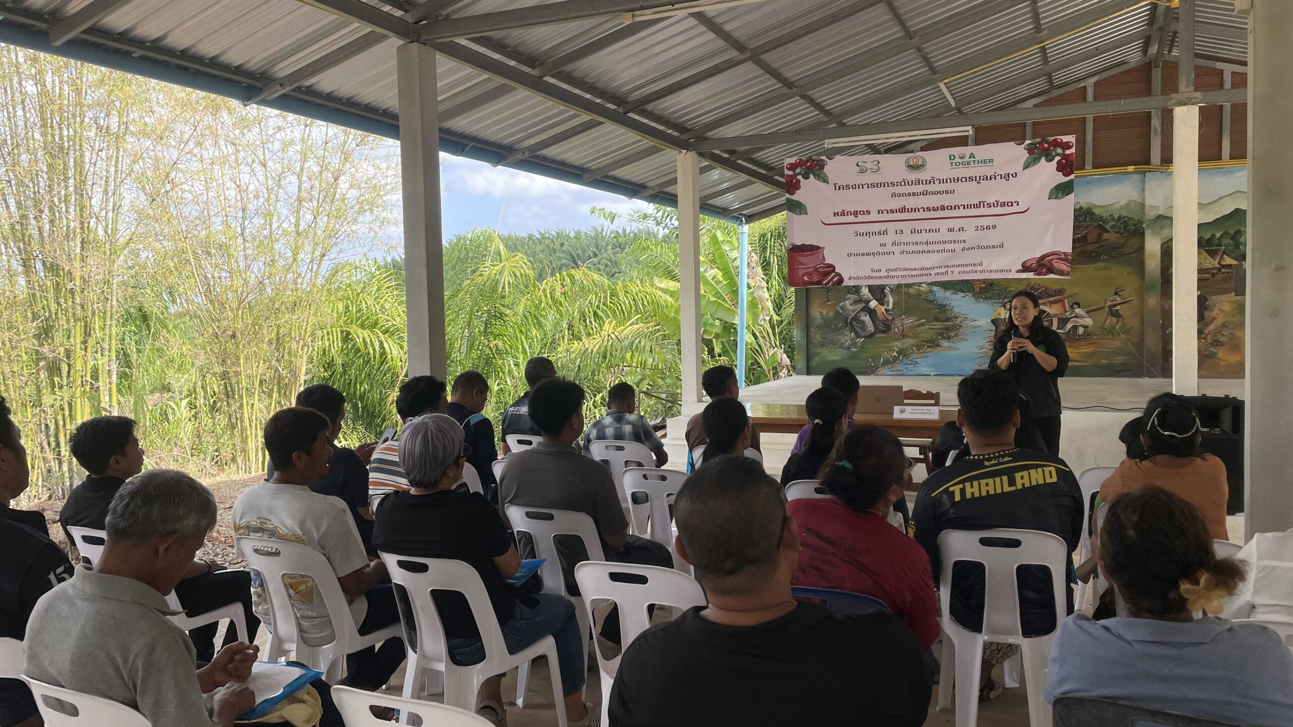 วันศุกร์ที่ 13 มีนาคม พ.ศ. 2569 นางสาวดารากร เผ่าชู นักวิชาการเกษตรชำนาญการ เป็นวิทยากรให้ความรู้โครงการยกระดับสินค้าเกษตรมูลค่าสูง กิจกรรม การเพิ่มการผลิตกาแฟโรบัสตา โดยการนำองค์ความรู้ เทคโนโลยีเกี่ยวกับการผลิตและการแปรรูปกาแฟโรบัสตาของกรมวิชาการเกษตรไปถ่ายทอดและเผยแพร่ให้กับเกษตรกร เพื่อส่งเสริมสนับสนุนให้เกษตรกรมีความรู้ความเข้าใจครอบคลุมห่วงโซ่การผลิตกาแฟ การเลือกพันธุ์ การปลูก การดูแลรักษา และมาตรฐานของกาแฟโรบัสตา โดยมีนางสาวปริญดา หรูนหีม ผู้อำนวยการศูนย์วิจัยและพัฒนาการเกษตรกระบี่ เป็นประธานเปิดการอบรม จัดโดยศูนย์วิจัยและพัฒนาเกษตรกระบี่ ณ ที่ทำการกลุ่มเกษตรกร ตำบลพรุดินนา อำเภอคลองท่อม จังหวัดกระบี่