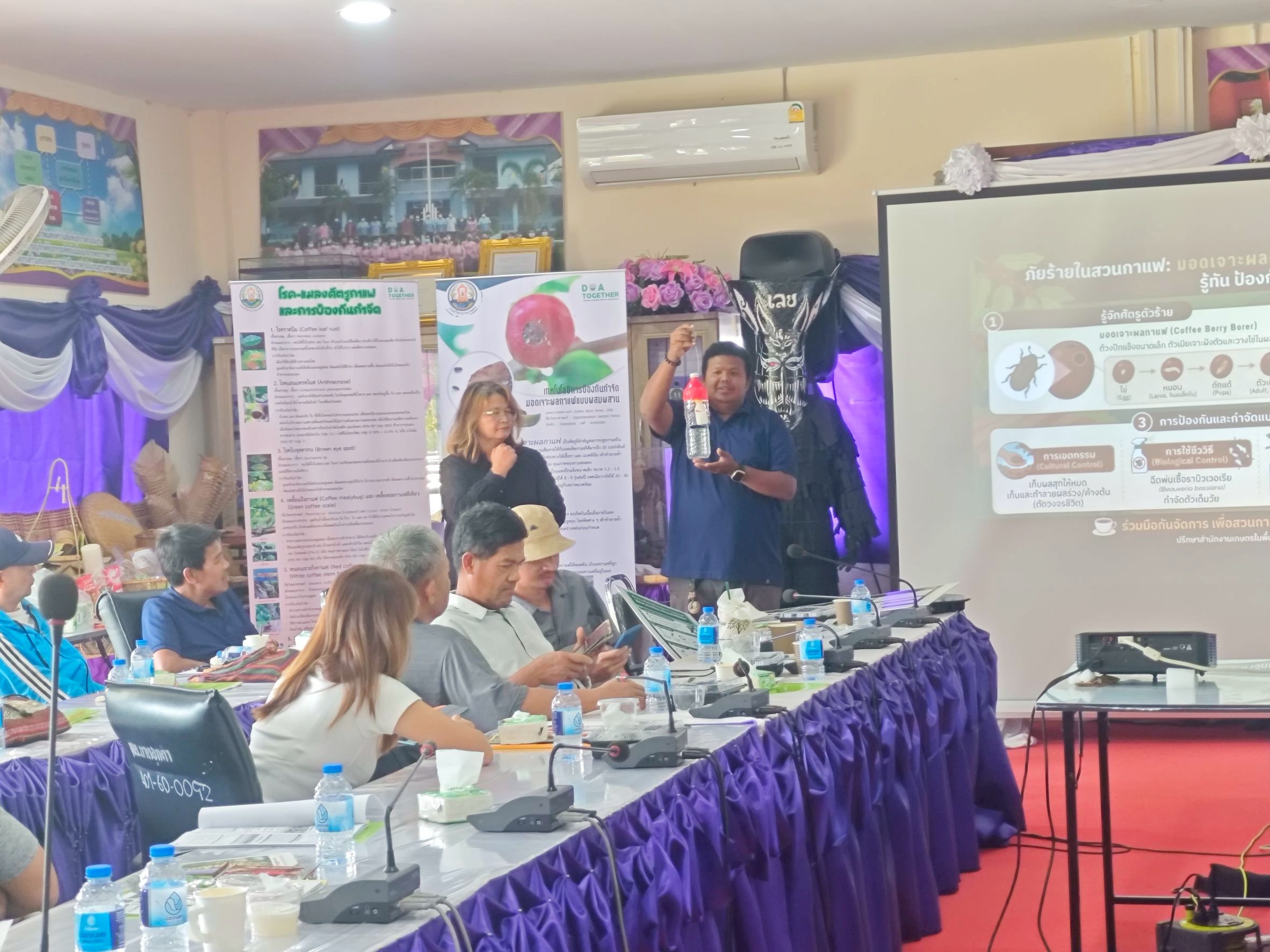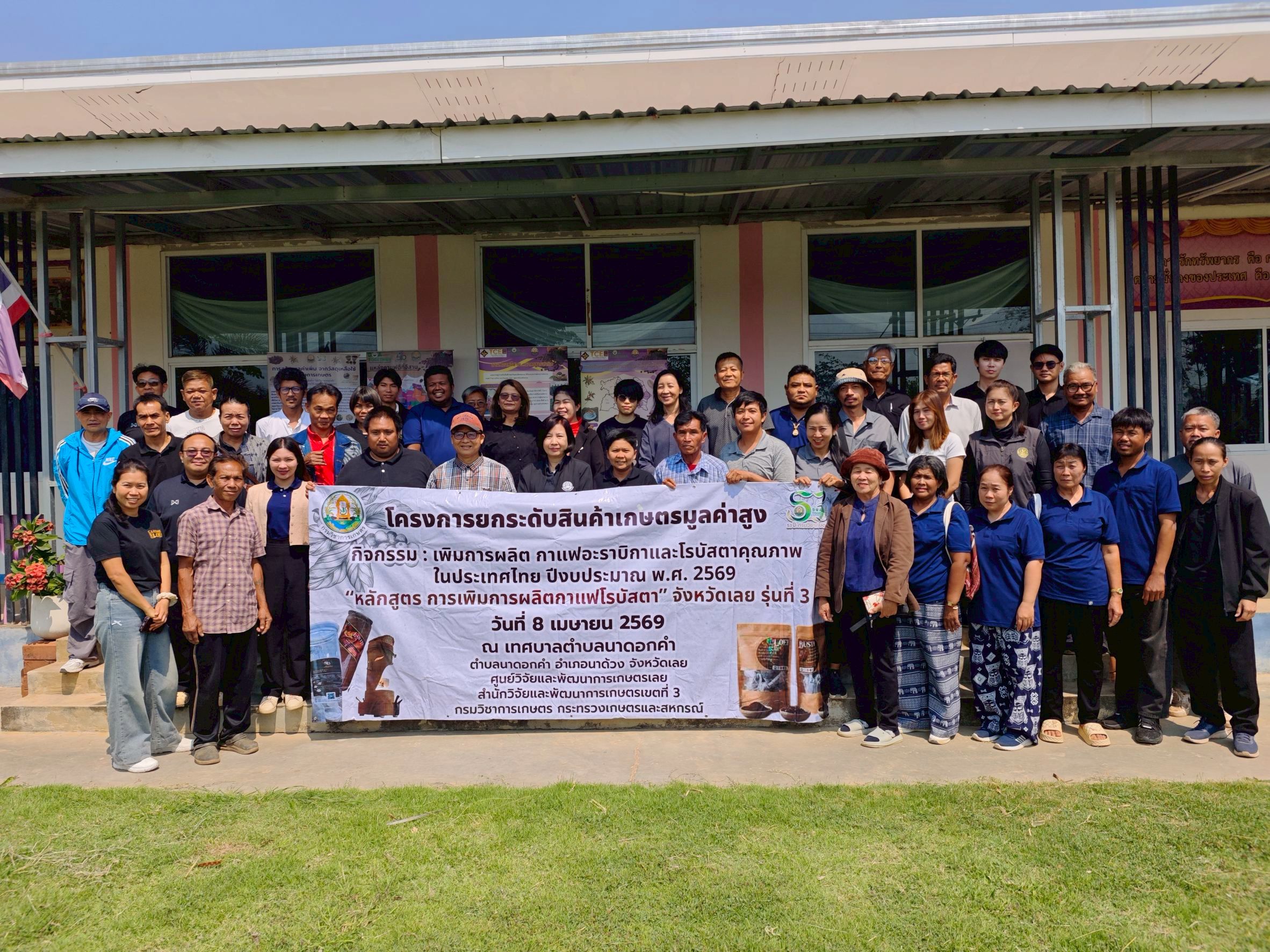 วันพุธที่ 8 เมษายน พ.ศ. 2569 นางสาวดารากร เผ่าชู นักวิชาการเกษตรชำนาญการ และนางสาวอรทัย ธนัญชัย นักวิชาการเกษตรชำนาญการ เป็นวิทยากรให้ความรู้ โครงการยกระดับสินค้าเกษตรมูลค่าสูง กิจกรรมเพิ่มการผลิตกาแฟอาราบิกาและโรบัสตาคุณภาพในประเทศไทย หลักสูตร การเพิ่มการผลิตกาแฟโรบัสตา จังหวัดเลย รุ่นที่ 3 เรื่อง”การเพิ่มประสิทธิภาพการผลิตกาแฟโรบัสตาในพื้นที่ปลูกใหม่” จัดโดยศูนย์วิจัยและพัฒนาการเกษตรเลย ณ เทศบาลตำบลนาดอกคำ ตำบลนาดอกคำ อำเภอนาด้วง จังหวัดเลย