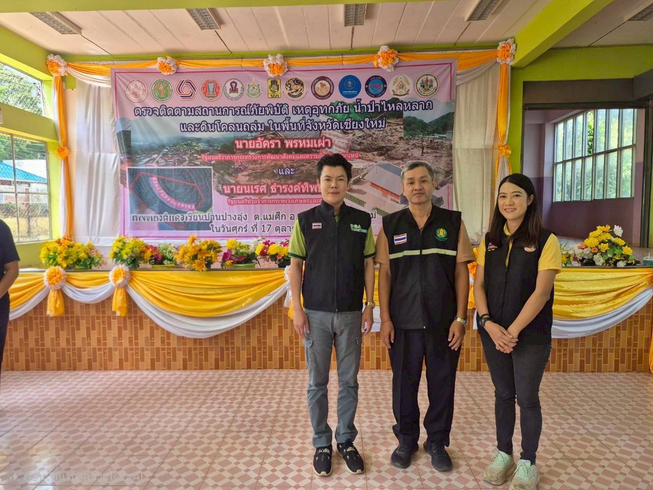 ข่าวกิจกรรม ดร.อรทัย วงค์เมธา ผู้อำนวยการศูนย์วิจัยเกษตรหลวงเชียงใหม่ มอบหนายให้นายกิตติ์พิพัชญ์ ศรีวิชัย เจ้าพนักงานการเกษตรปฏิบัติงาน ร่วมต้อนรับนายอัครา พรหมเผ่า รัฐมนตรีว่าการกระทรวงการพัฒนาสังคมและความมั่นคงของมนุษย์และนายนเรศ ธำรงค์ทิพยคุณ รัฐมนตรีช่วยว่าการกระทรวงเกษตรและสหกรณ์ เนื่องในโอกาสลงพื้นที่ตรวจราชการและติดตามผลกระทบจากสถานการณ์อุทกภัย 18/10/2568 ว่าที่ร้อยตรีชยพล เดขาคุ้ม เมื่อวันที่ 17 ตุลาคม 2568 ดร.อรทัย วงค์เมธา ผู้อำนวยการศูนย์วิจัยเกษตรหลวงเชียงใหม่ มอบหนายให้นายกิตติ์พิพัชญ์ ศรีวิชัย เจ้าพนักงานการเกษตรปฏิบัติงาน ร่วมต้อนรับนายอัครา พรหมเผ่า รัฐมนตรีว่าการกระทรวงการพัฒนาสังคมและความมั่นคงของมนุษย์และนายนเรศ ธำรงค์ทิพยคุณ รัฐมนตรีช่วยว่าการกระทรวงเกษตรและสหกรณ์ เนื่องในโอกาสลงพื้นที่ตรวจราชการและติดตามผลกระทบจากสถานการณ์อุทกภัย ในระหว่างวันที่ ๑๖ – ๑๙ตุลาคม ๒๕๖๘ ในพื้นที่จังหวัดเชียงใหม่ จังหวัดลำพูน จังหวัดแม่ฮ่องสอน และจังหวัดพะเยา ณ โรงเรียนบ้านปางอุ๋ง ต.แม่ศึก อ.แม่แจ่ม จ.เชียงใหม่ FacebookFacebookXTwitterLINELine