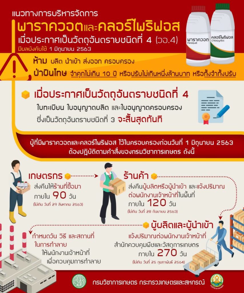 เกร็ดความรู้ทั่วไป แนวทางบริหารจัดการพราราควอต และคลอร์ไพริฟอส เมื่อประกาศเป็นวัตถุอันตรายชนิดที่ 4 (วอ.4) 07/11/2568 cmrarc FacebookFacebookXTwitterLINELine
