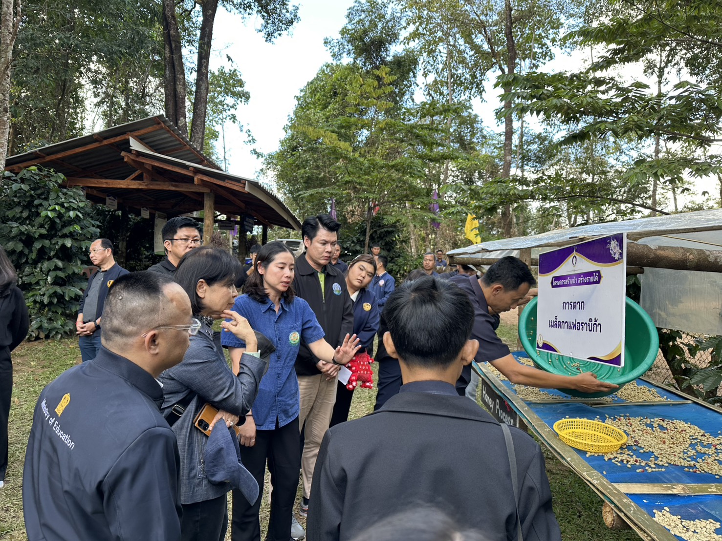 ข่าวกิจกรรม ดร.อรทัย วงค์เมธา ผู้อำนวยการศูนย์วิจัยเกษตรหลวงเชียงใหม่ มอบหมายให้ นางสาวศิริภรณ์ จรินทร นักวิชาการเกษตรปฏิบัติการ และ นายกิตติ์พิพัชญ์ ศรีวิชัย เจ้าพนักงานการเกษตรปฏิบัติงาน พร้อมเจ้าหน้าที่กลุ่มวิจัย ศูนย์วิจัยกษตรหลวงเชียงใหม่ เข้าร่วมหารือแนวทางการพัฒนาคุณภาพกาแฟ โครงการสร้างป่า สร้างรายได้ ตามพระราชดำริ สมเด็จพระกนิษฐาธิราชเจ้า กรมสมเด็จพระเทพรัตนราชสุดาฯ สยามบรมราชกุมารี 19/12/2568 ว่าที่ร้อยตรีชยพล เดชาคุ้ม วันที่ 17 ธันวาคม 2568 ดร.อรทัย วงค์เมธา ผู้อำนวยการศูนย์วิจัยเกษตรหลวงเชียงใหม่ มอบหมายให้ นางสาวศิริภรณ์ จรินทร นักวิชาการเกษตรปฏิบัติการ และ นายกิตติ์พิพัชญ์ ศรีวิชัย เจ้าพนักงานการเกษตรปฏิบัติงาน พร้อมเจ้าหน้าที่กลุ่มวิจัย ศูนย์วิจัยกษตรหลวงเชียงใหม่ เข้าร่วมหารือแนวทางการพัฒนาคุณภาพกาแฟ โครงการสร้างป่า สร้างรายได้ ตามพระราชดำริ สมเด็จพระกนิษฐาธิราชเจ้า กรมสมเด็จพระเทพรัตนราชสุดาฯ สยามบรมราชกุมารี โดยได้รับเกียรติจาก นางศิราณี อิ่มสุวรรณ ที่ปรึกษาโครงการสร้างป่าสร้างรายได้ ตามพระราชดำริ สำนักงานโครงการสวนพระองค์ 905 ให้คำแนะนำและแนวทางในการดำเนินงาน ร่วมกับ สกร.อำเภอแม่แจ่มทั้งนี้คณะทำงานฯ ได้เยี่ยมชมแปลงสาธิตไม้ป่า-ไม้เกษตรระบบ4 ชั้นเรือนยอด และรับฟังแนวทางพัฒนาคุณภาพผลผลิตกาแฟ และความร่วมมือด้านการวิจัยเพื่อพัฒนากาแฟอะราบิกา สายพันธุ์ลูกผสม H528 ณ ศูนย์การเรียนรู้ชุมชนชาวไทยภูเขา “ แม่ฟ้าหลวง” บ้านสะมอจาบน ตำบลแม่ศึก อำเภอแม่แจ่ม จังหวัดเชียงใหม่ FacebookFacebookXTwitterLINELine