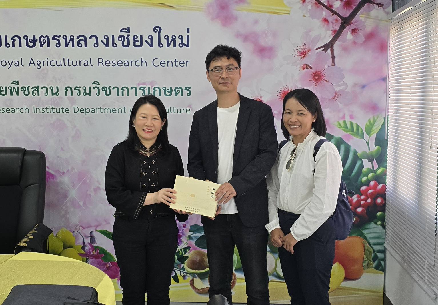 ข่าวกิจกรรม ดร.อรทัย วงค์เมธา ผู้อำนวยการศูนย์วิจัยเกษตรหลวงเชียงใหม่ และ ดร.ศิรากานต์ ขยันการ นักวิชาการเกษตรชำนาญการพิเศษ พร้อมด้วยข้าราชการ พนักงานราชการ ศูนย์วิจัยเกษตรหลวงเชียงใหม่ ให้การต้อนรับ รองศาสตราจารย์ดร.Kaibo Wang จาก สถาบันวิจัยชา สถาบันวิทยาศาสตร์การเกษตรเขตร้อนยูนนาน (YAAS) 25/12/2568 ว่าที่ร้อยตรีชยพล เดชาคุ้ม ดร.อรทัย วงค์เมธา ผู้อำนวยการศูนย์วิจัยเกษตรหลวงเชียงใหม่ และ ดร.ศิรากานต์ ขยันการ นักวิชาการเกษตรชำนาญการพิเศษ พร้อมด้วยข้าราชการ พนักงานราชการ ศูนย์วิจัยเกษตรหลวงเชียงใหม่ ให้การต้อนรับ รองศาสตราจารย์ดร.Kaibo Wang จาก สถาบันวิจัยชา สถาบันวิทยาศาสตร์การเกษตรเขตร้อนยูนนาน (YAAS) และอาจารย์ จาก คณะเภสัชศาสตร์ คณะอุตสหกรรมการเกษตรมหาวิทยาลัยเชียงใหม่ เพื่อศึกษาดูงานด้านการแปรรูปชา ณ ศูนย์วิจัยเกษตรหลวงโป่งน้อย และ ปรึกษาพูดคุยด้านการตลาดกับร้าน มอนซูน ที FacebookFacebookXTwitterLINELine