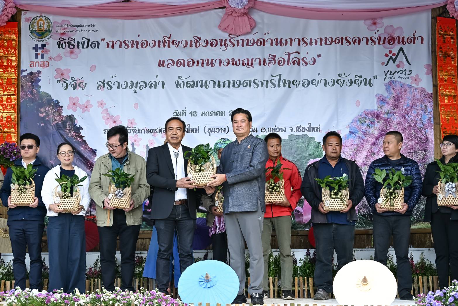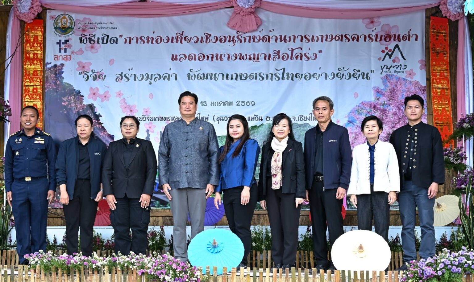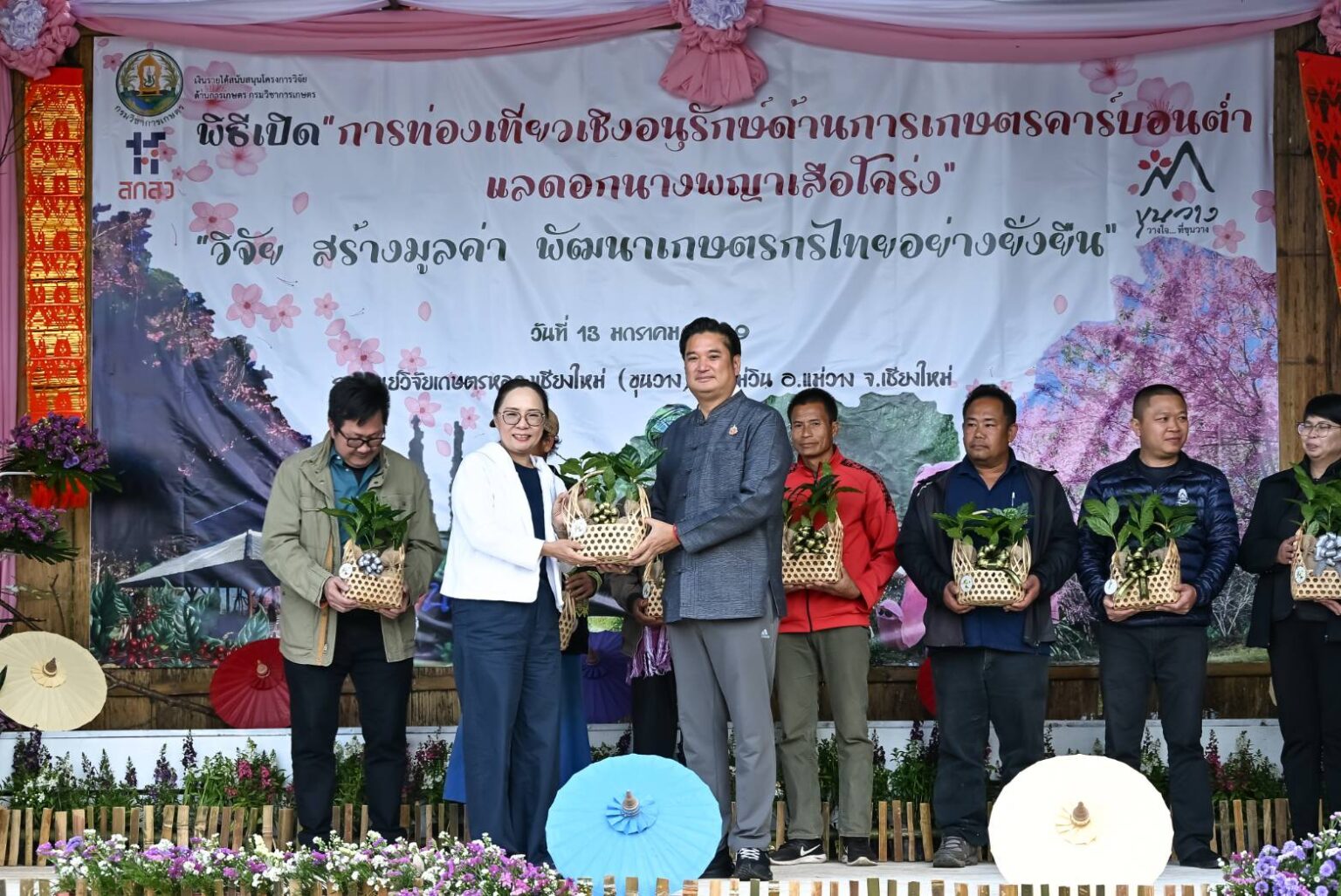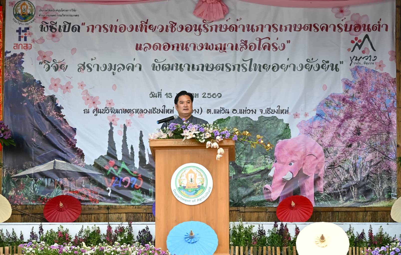 วันที่ 13 – 14 มกราคม 2569 ศูนย์วิจัยเกษตรหลวงเชียงใหม่ จัดงาน “โครงการท่องเที่ยวเชิงอนุรักษ์ด้านการเกษตรคาร์บอนต่ำ แลดอกนางพญาเสือโคร่ง” วิจัย สร้างมูลค่า พัฒนาเกษตรกรไทยอย่างยั่งยืน และ โครงการกระจายพันธุ์ต้นกล้ากาแฟ 1 ล้านต้น ตามนโยบายของอธิบดีกรมวิชาการเกษตร ณ ศูนย์วิจัยเกษตรหลวงเชียงใหม่ (ขุนวาง) ต.แม่วิน อ.แม่วาง จ.เชียงใหม่ โดยมี ท่านรพีภัทร์ จันทรศรีวงศ์ อธิบดีกรมวิชาการเกษตร เป็นประธานในพิธีเปิด และ ดร. อรทัย วงค์เมธา ผู้อำนวยการศูนย์วิจัยเกษตรหลวงเชียงใหม่ กล่าวต้อนรับและกล่าวรายงาน